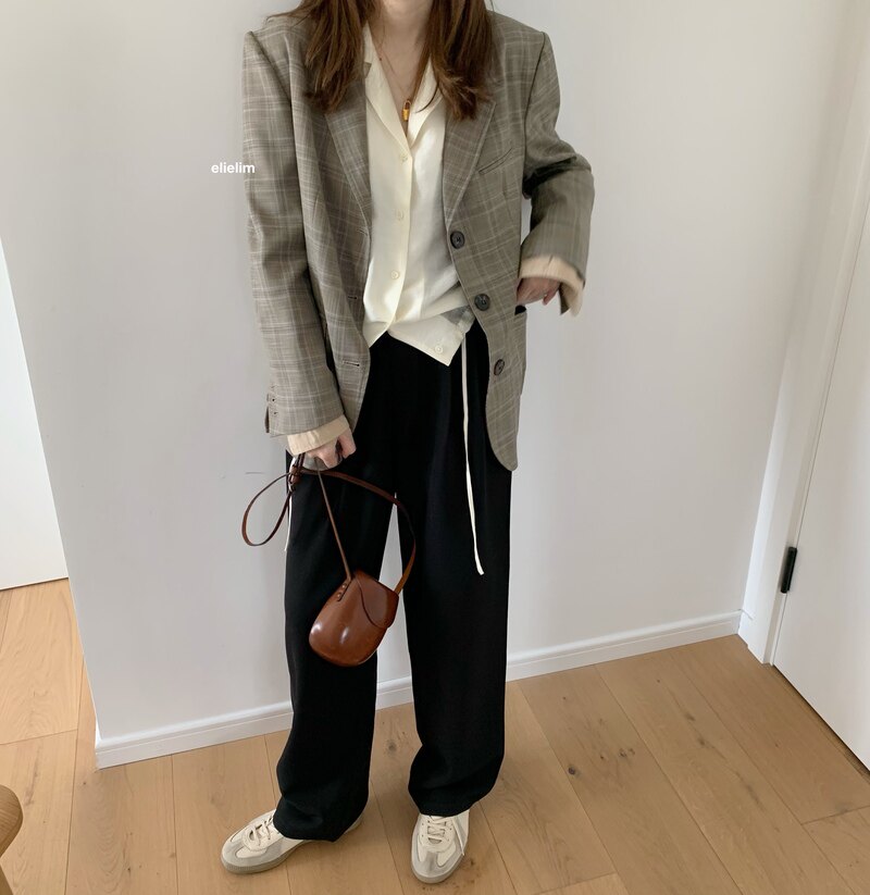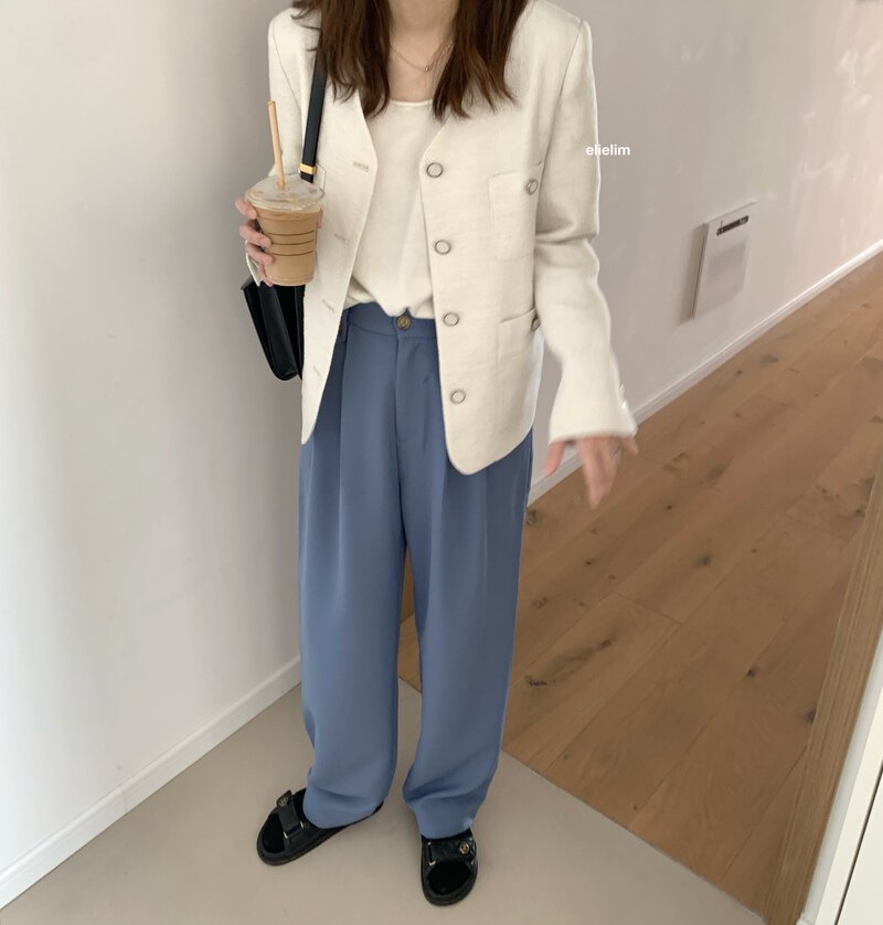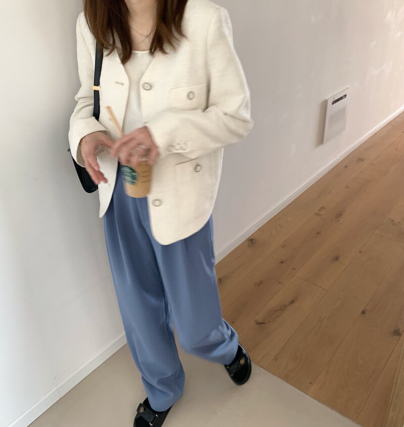 Минималистичный дизайнерский пиджак классического кроя, весенние штаны, тренд сезона, свободный прямой крой
