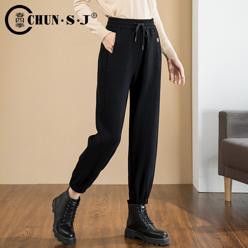 Черные осенние штаны, фонарь для отдыха, эластичная талия, коллекция 2021