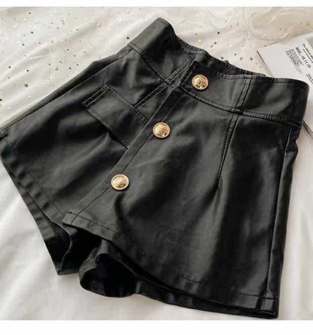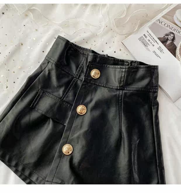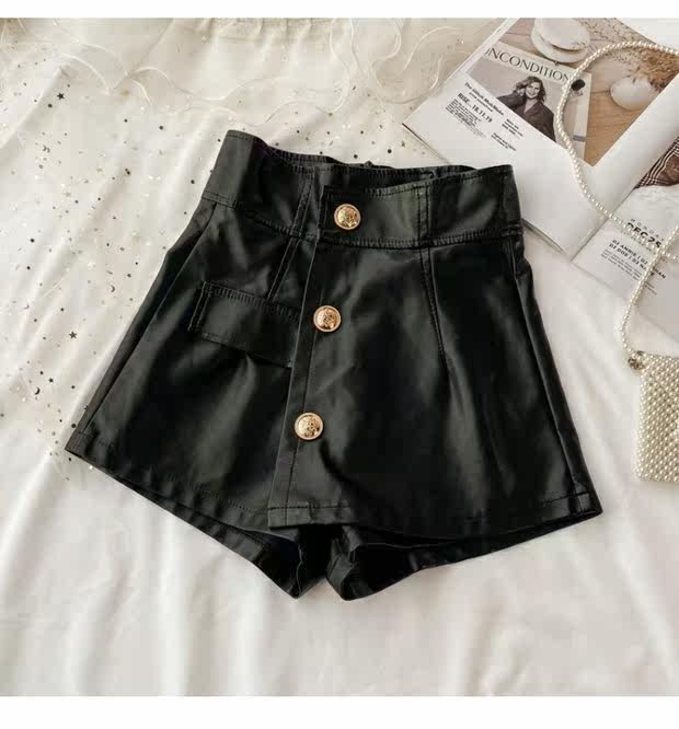 Демисезонные полиуретановые штаны, поясная сумка, шорты, юбка, А-силуэт, высокая талия