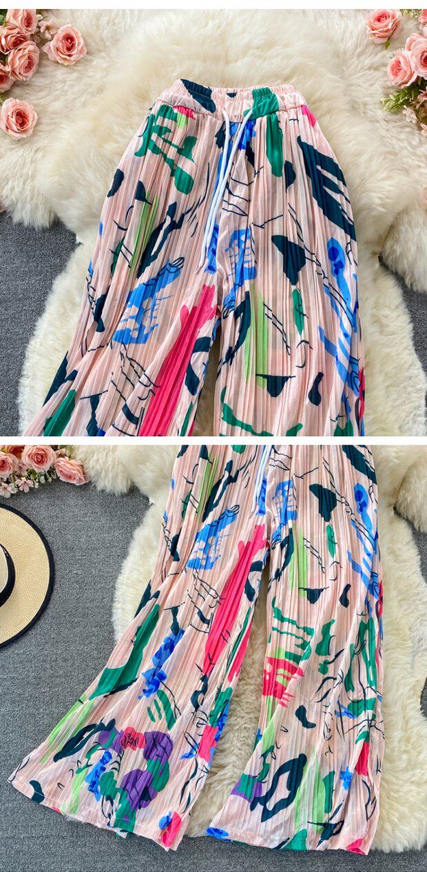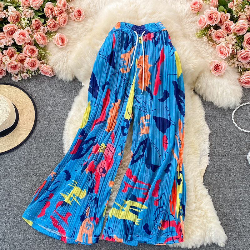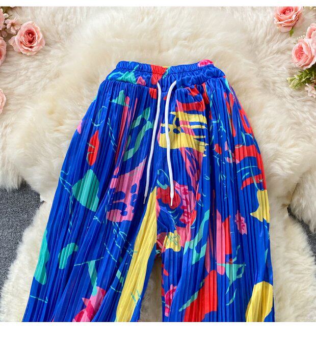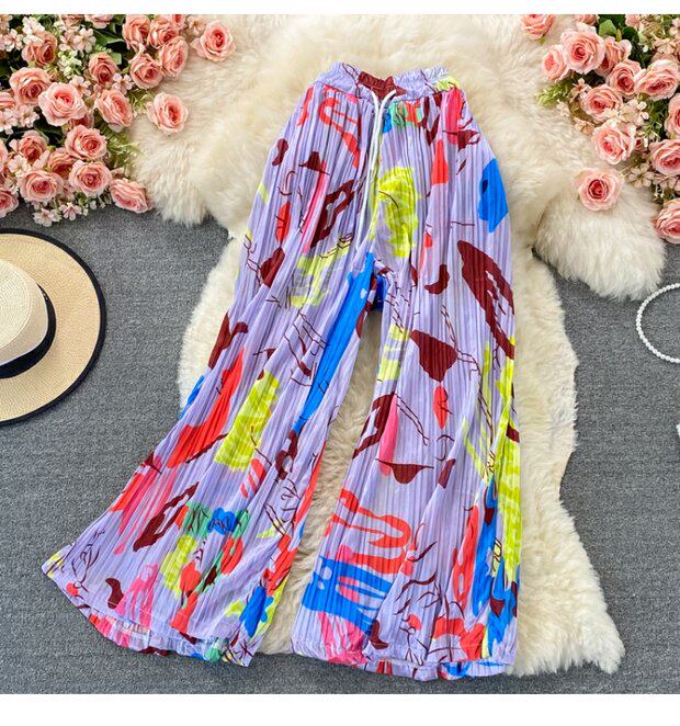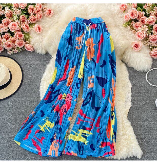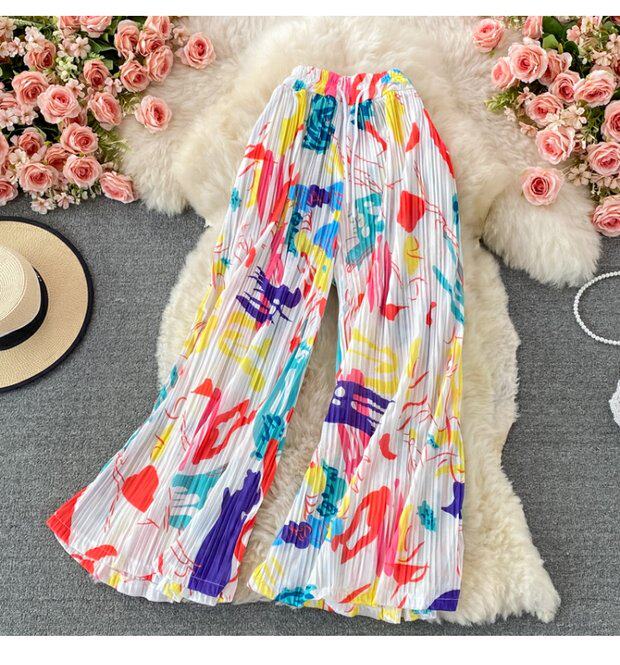 Штаны, высокая талия, оверсайз, эластичная талия