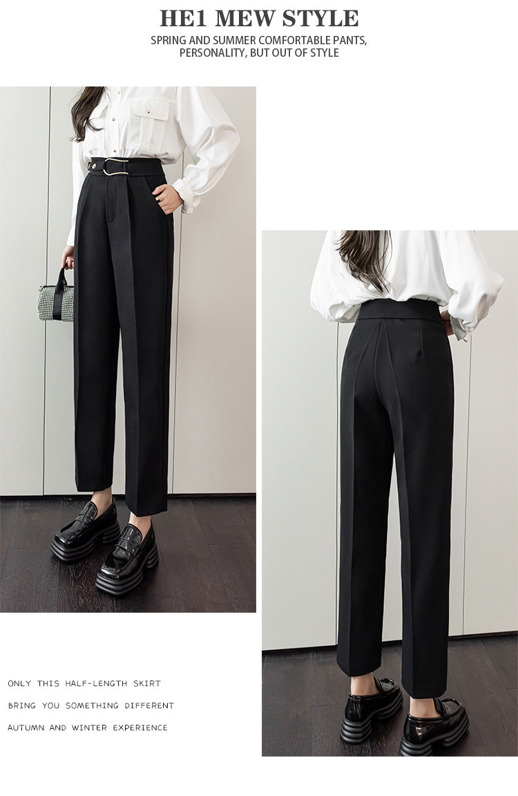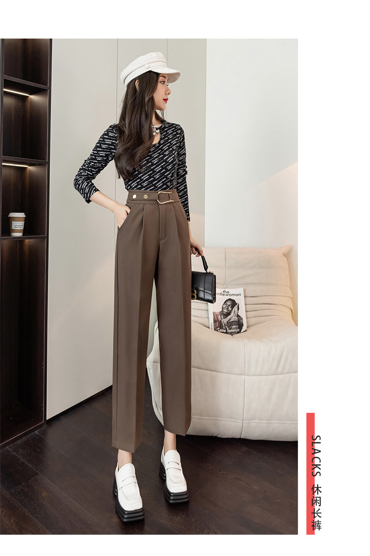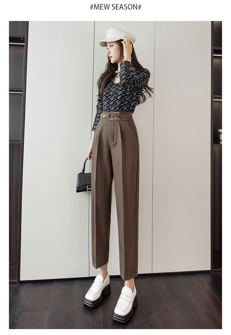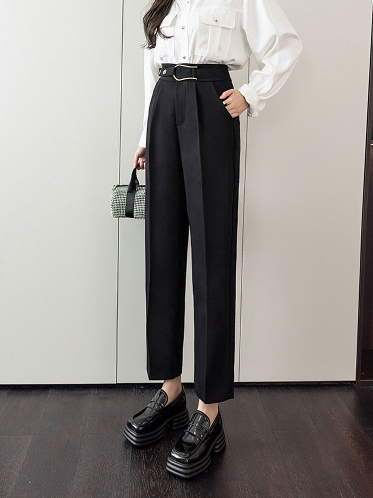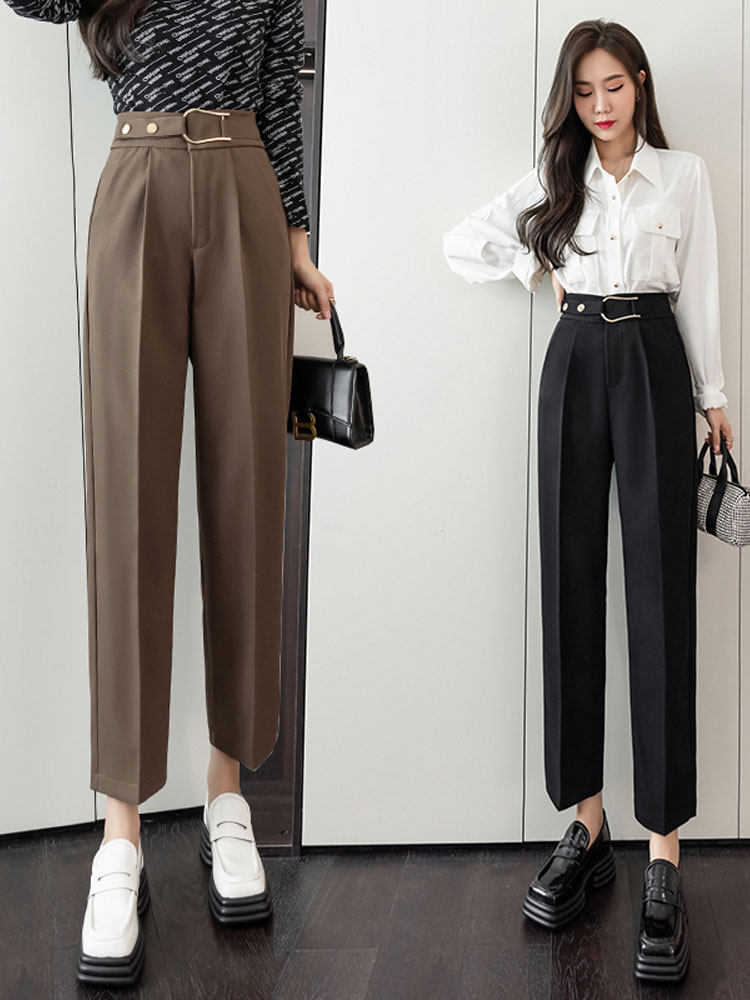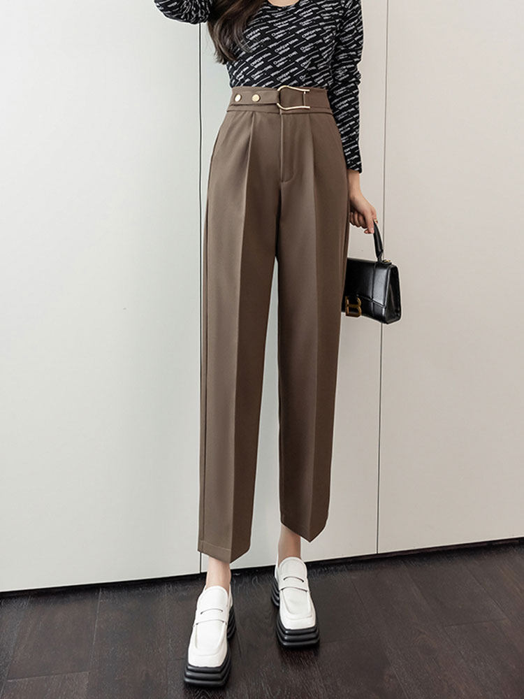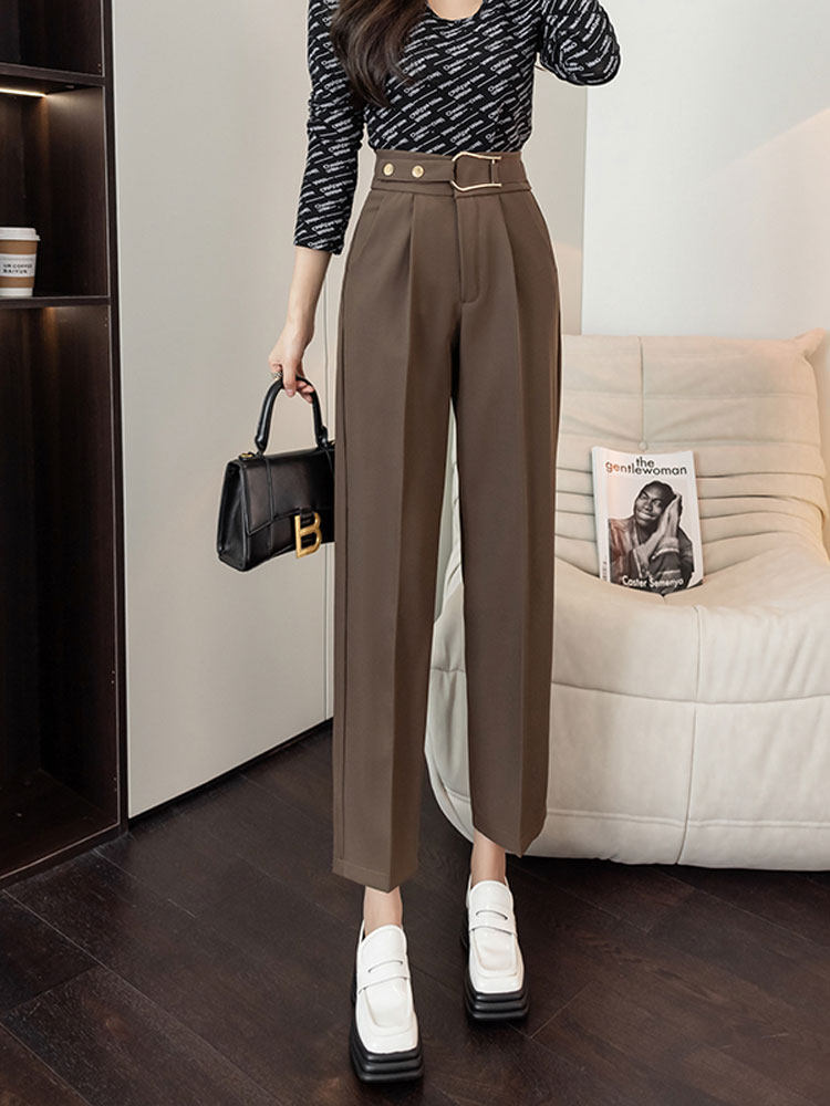 Костюм, осенние штаны, свободный прямой крой, высокая талия