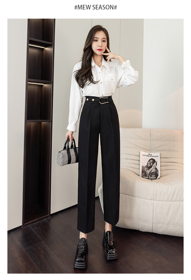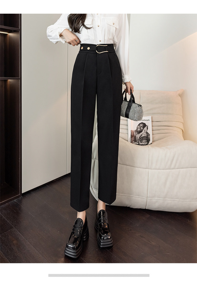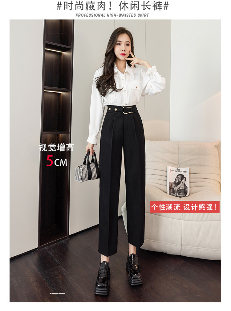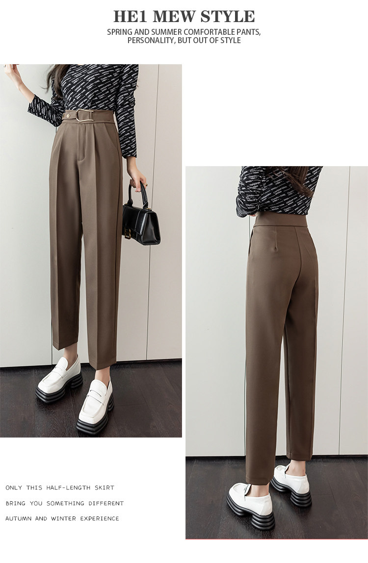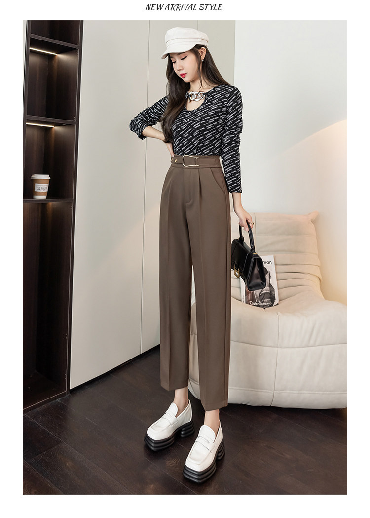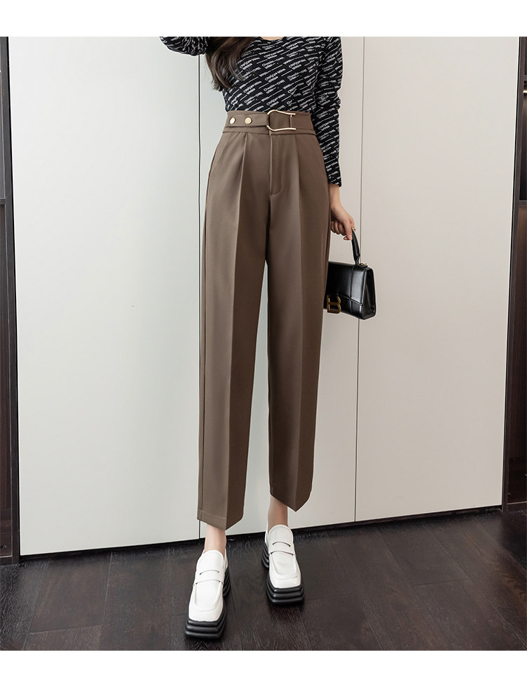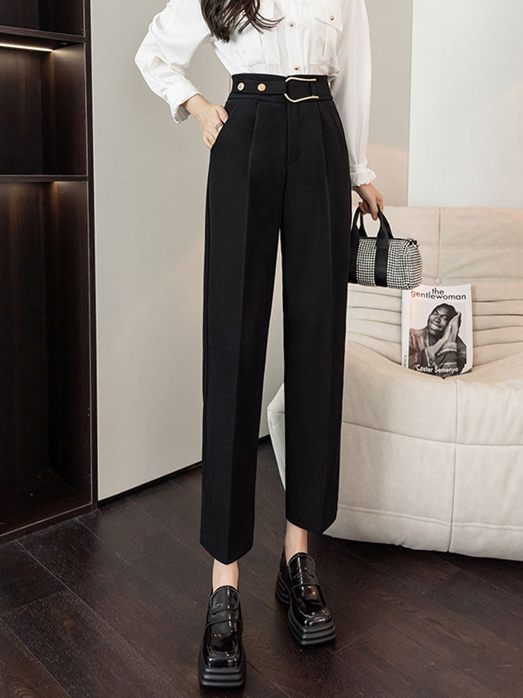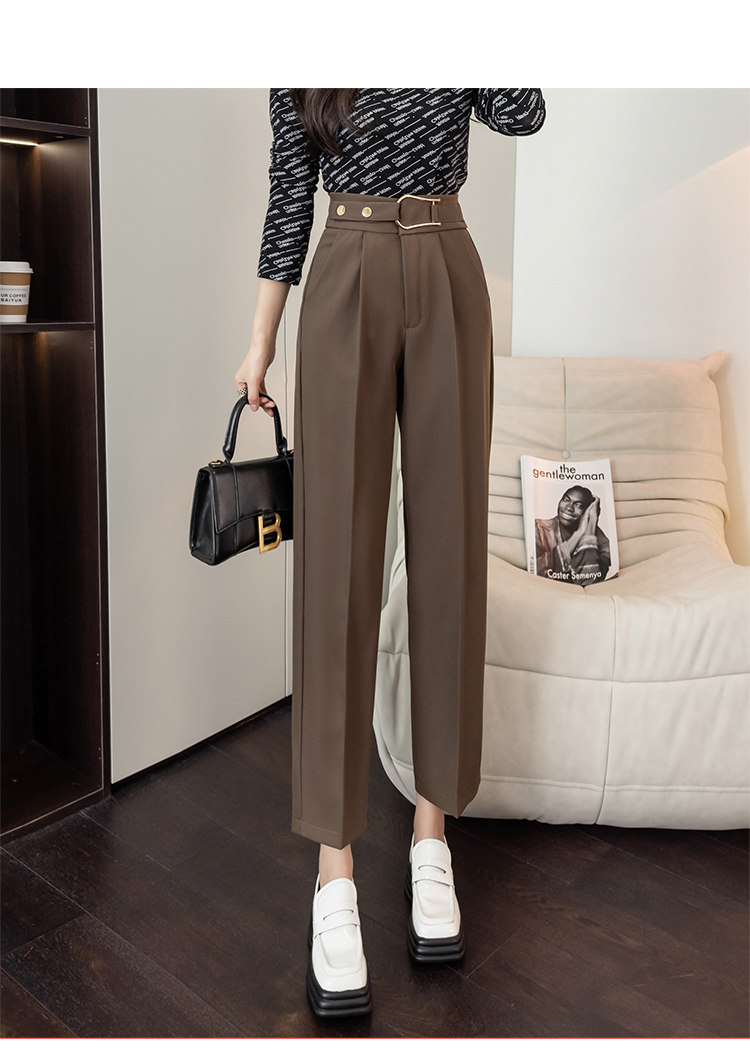 Костюм, осенние штаны, свободный прямой крой, высокая талия