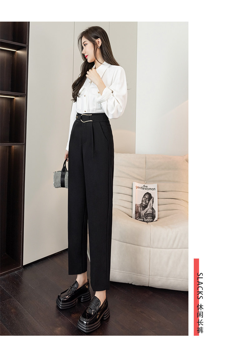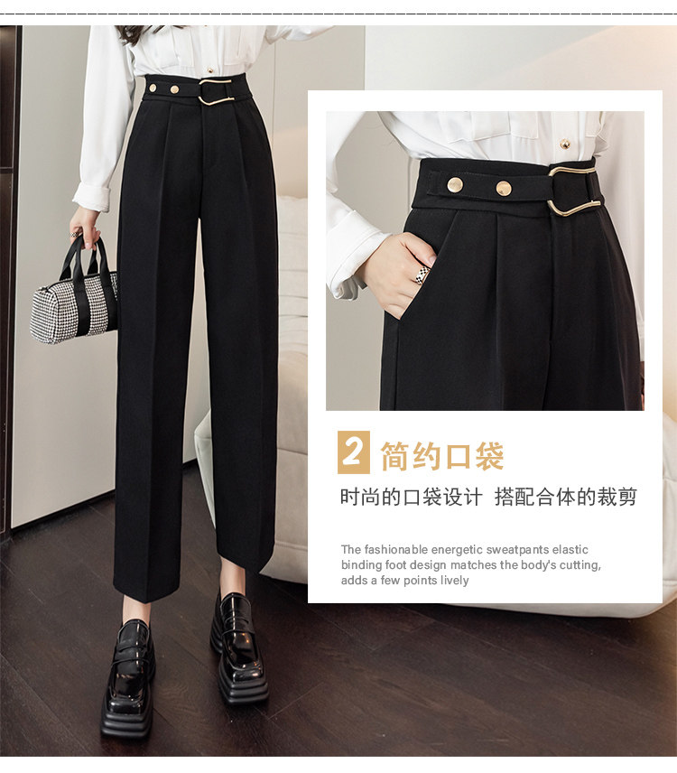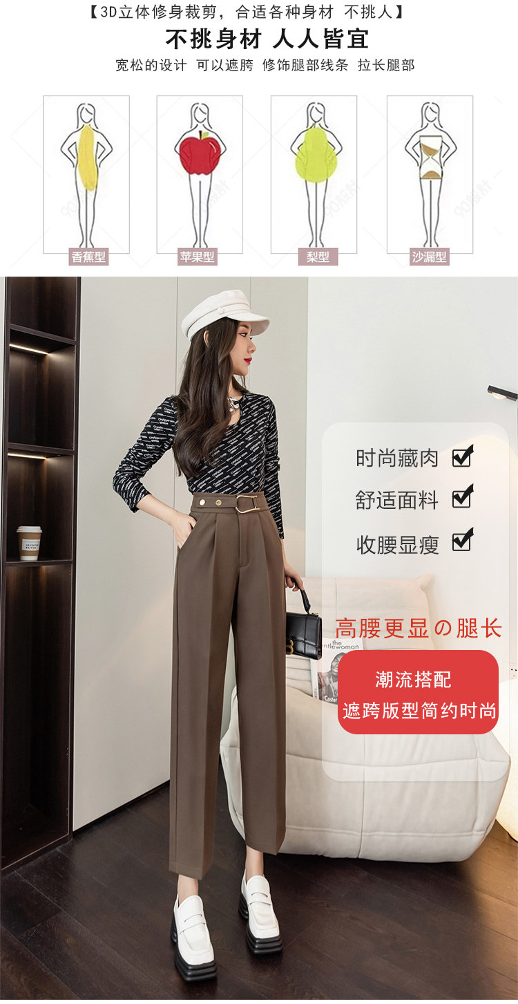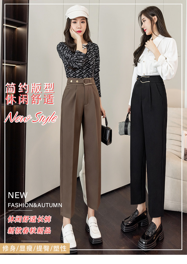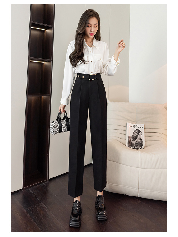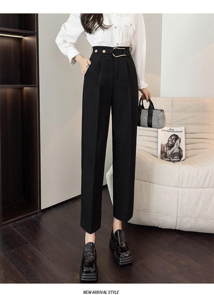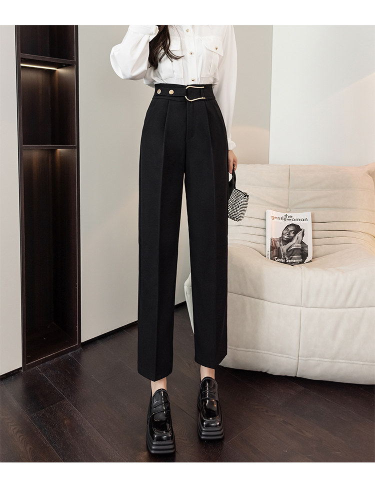 Костюм, осенние штаны, свободный прямой крой, высокая талия