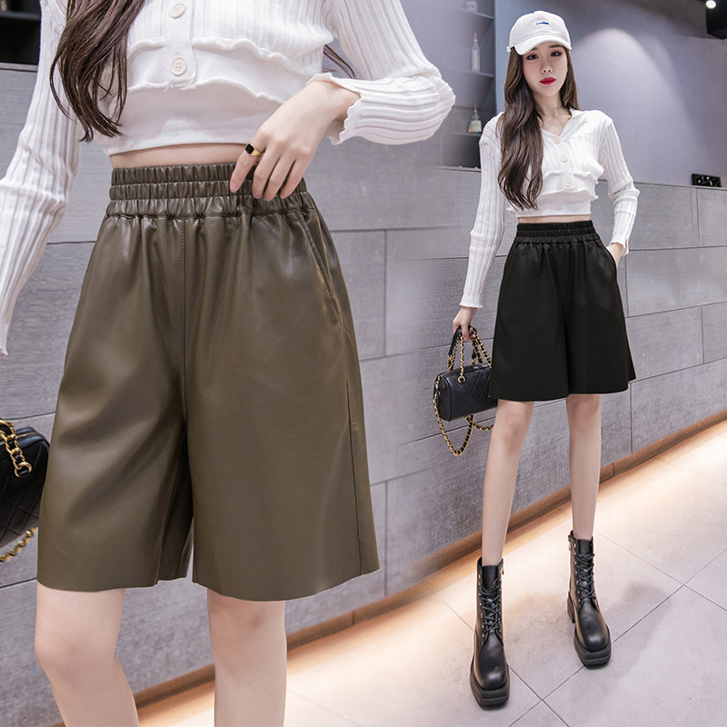Полиуретановые шорты, базовые штаны, коллекция 2021, оверсайз, свободный крой, высокая талия