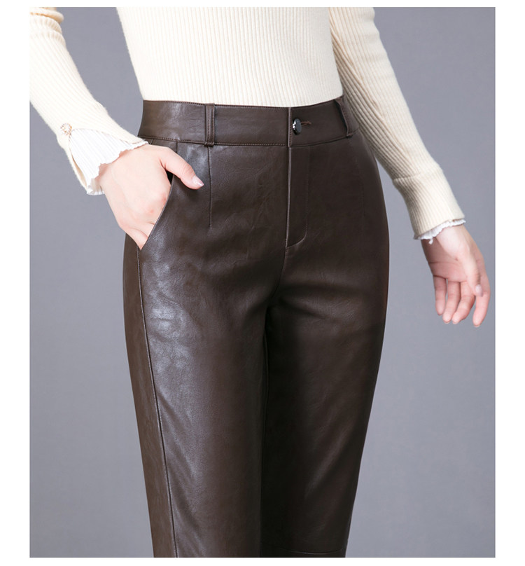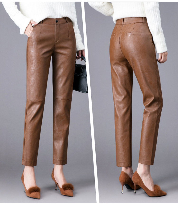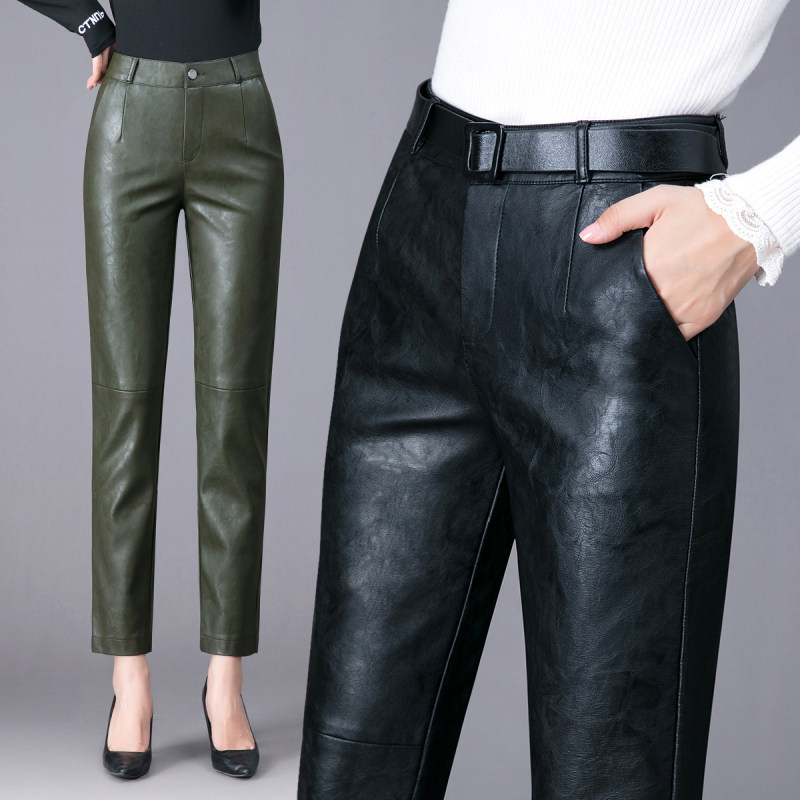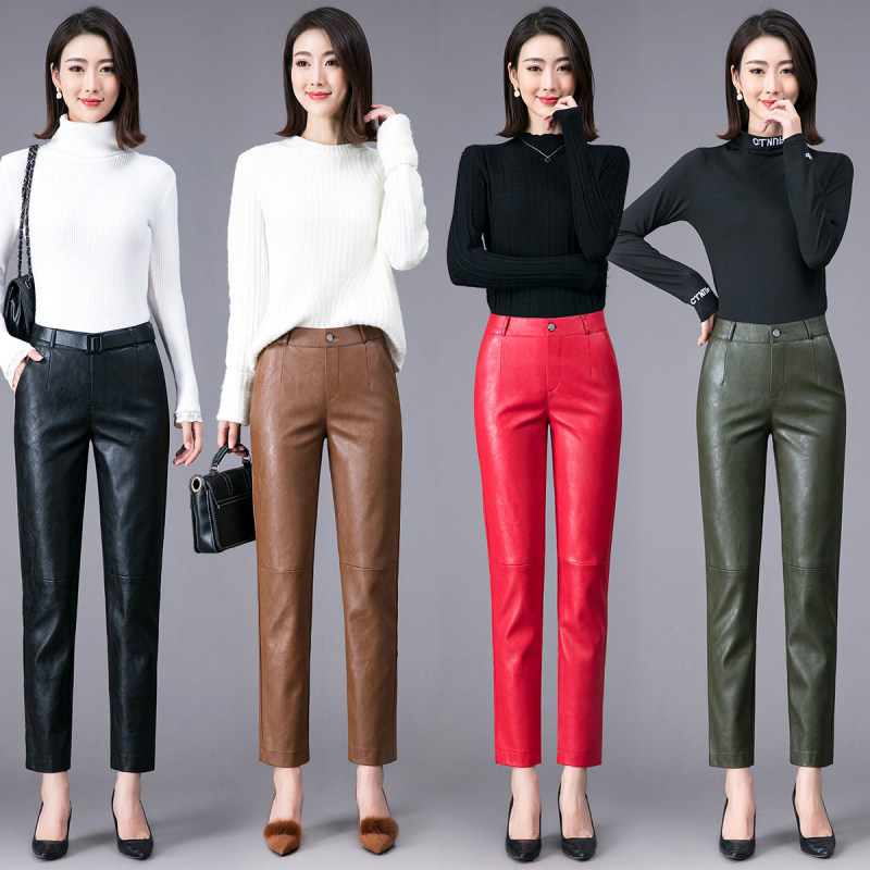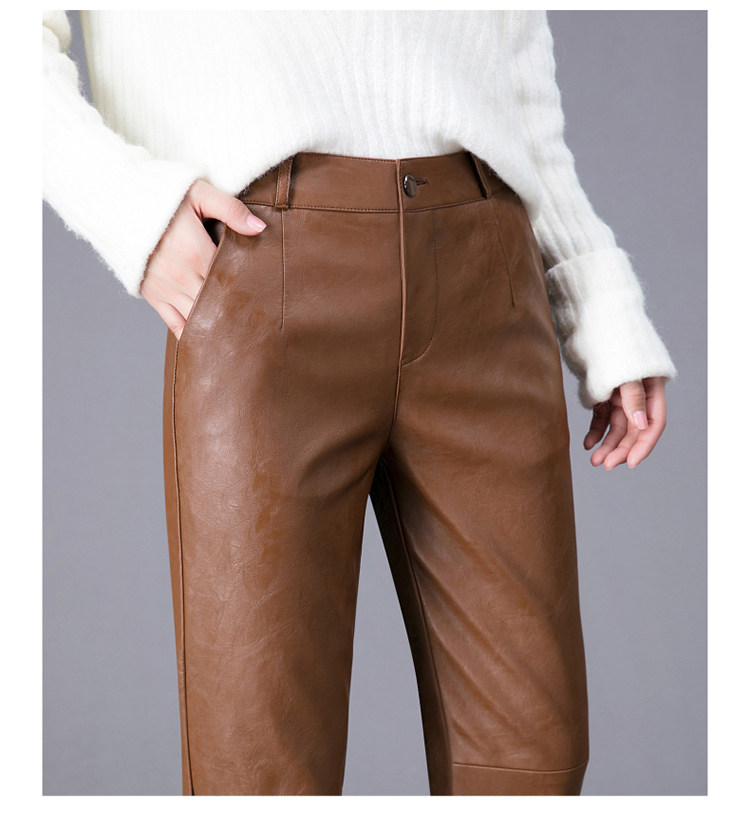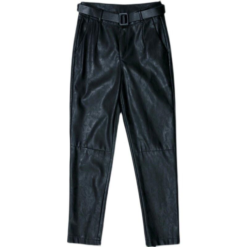 Демисезонные утепленные штаны, из натуральной кожи, высокая талия, свободный прямой крой