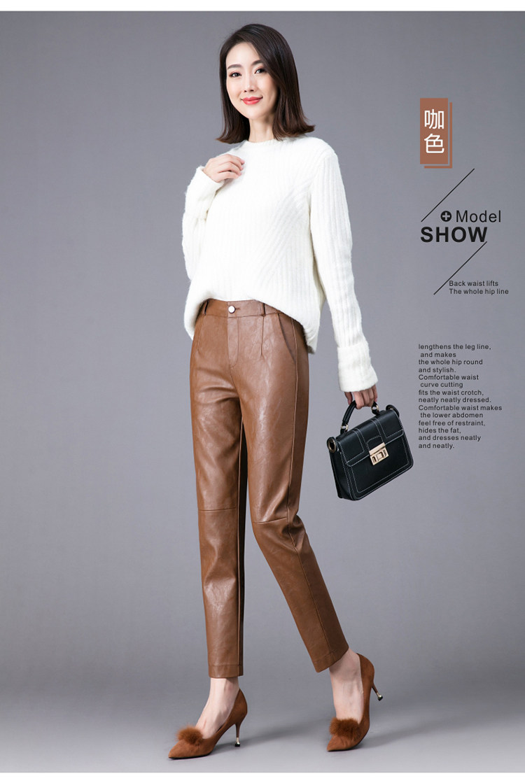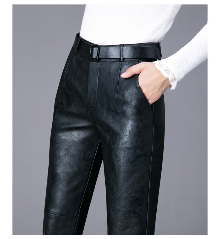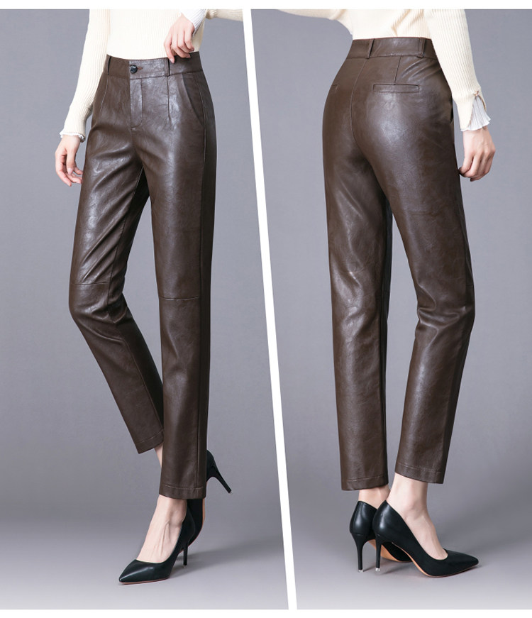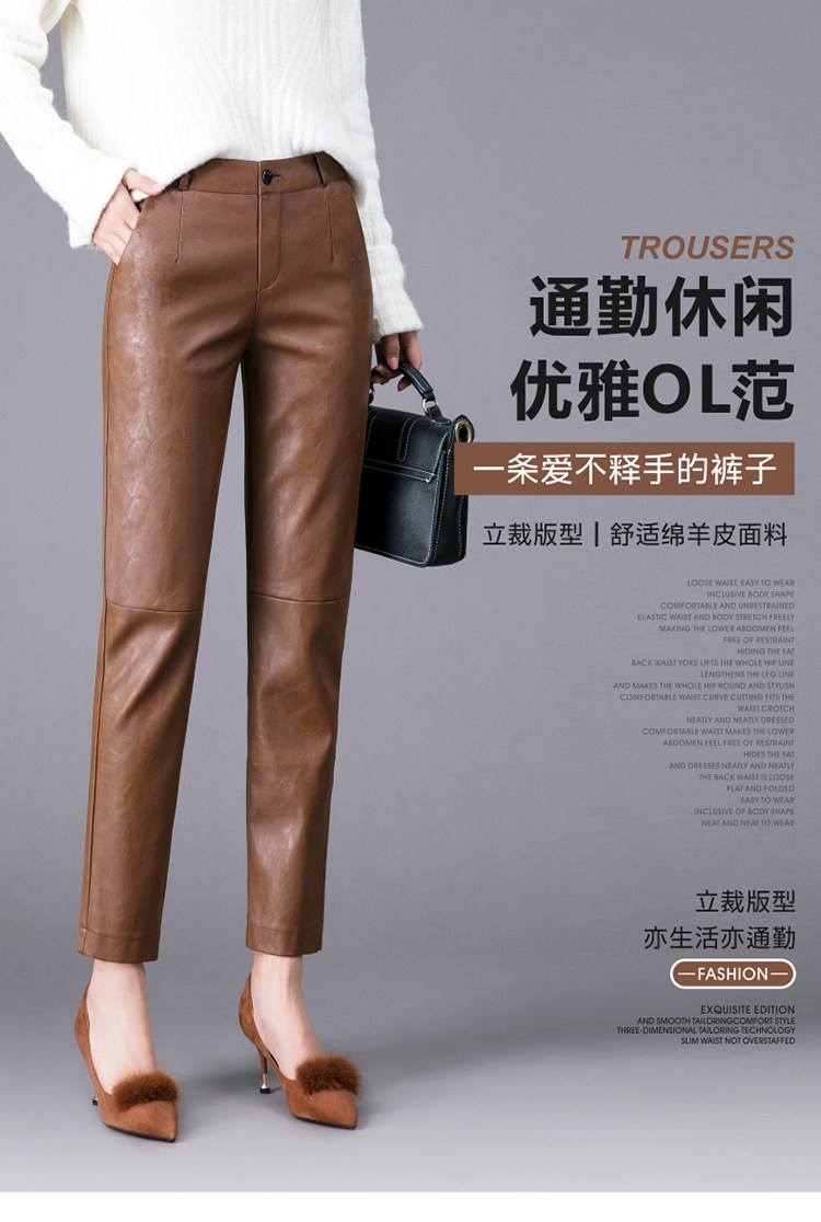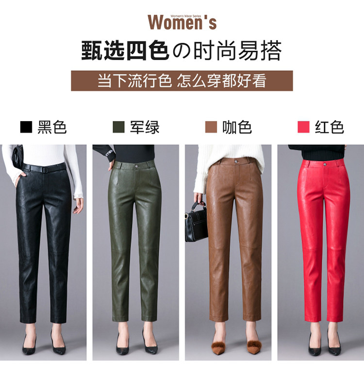 Демисезонные утепленные штаны, из натуральной кожи, высокая талия, свободный прямой крой