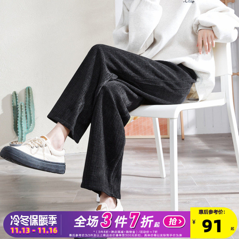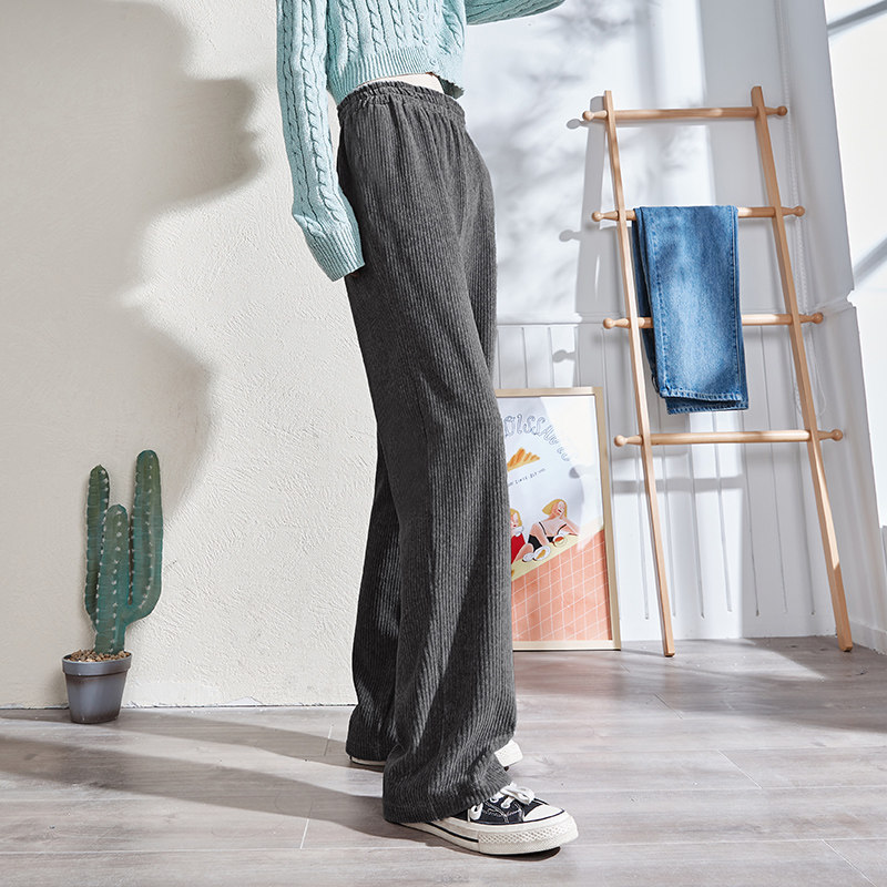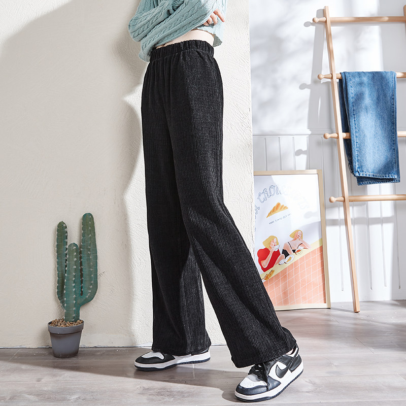 Осенние вельветовые черные штаны для отдыха, высокая талия, свободный крой