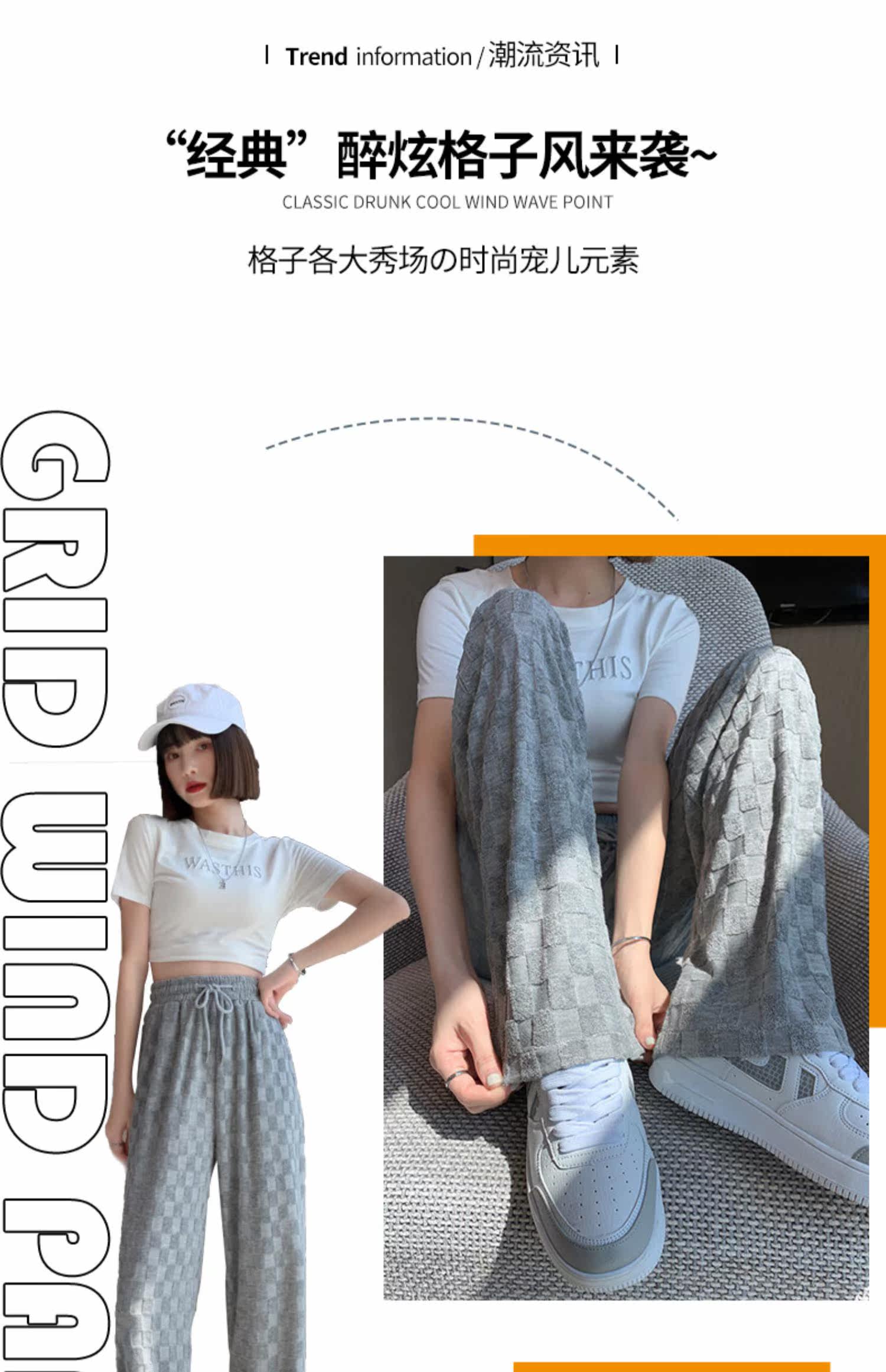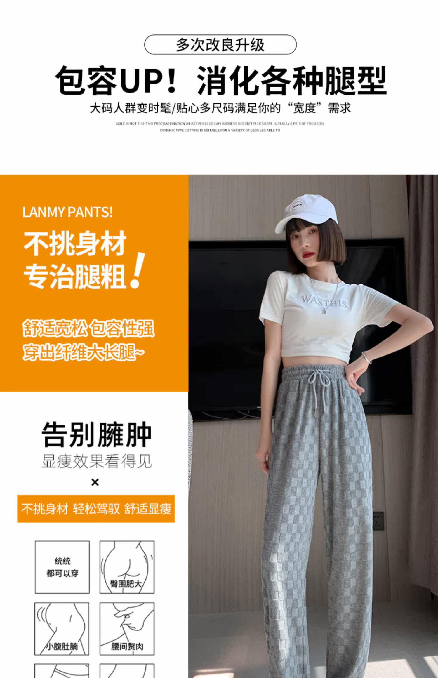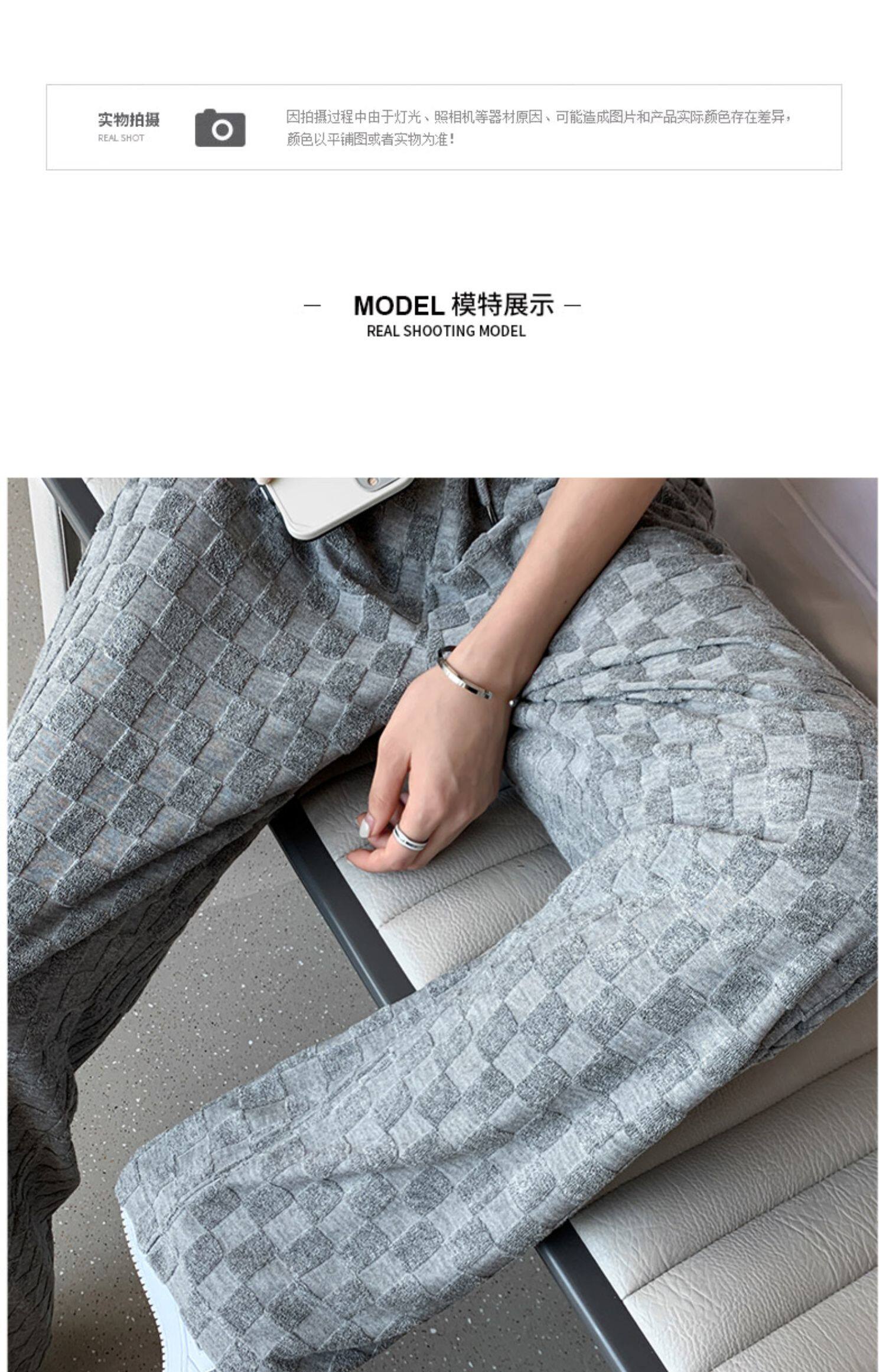 Шахматы, осенние демисезонные штаны для отдыха, свободный прямой крой, высокая талия