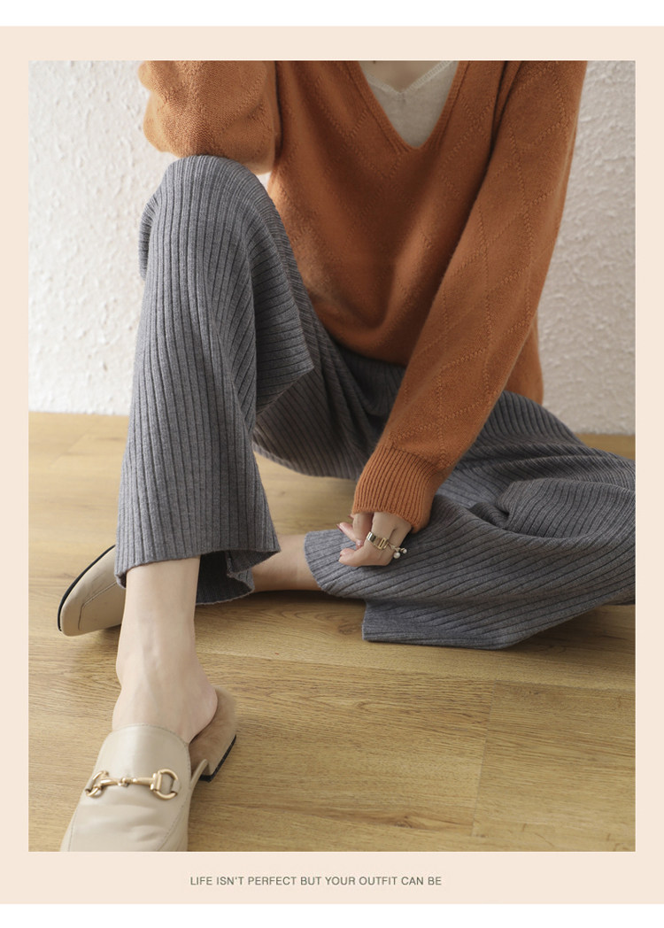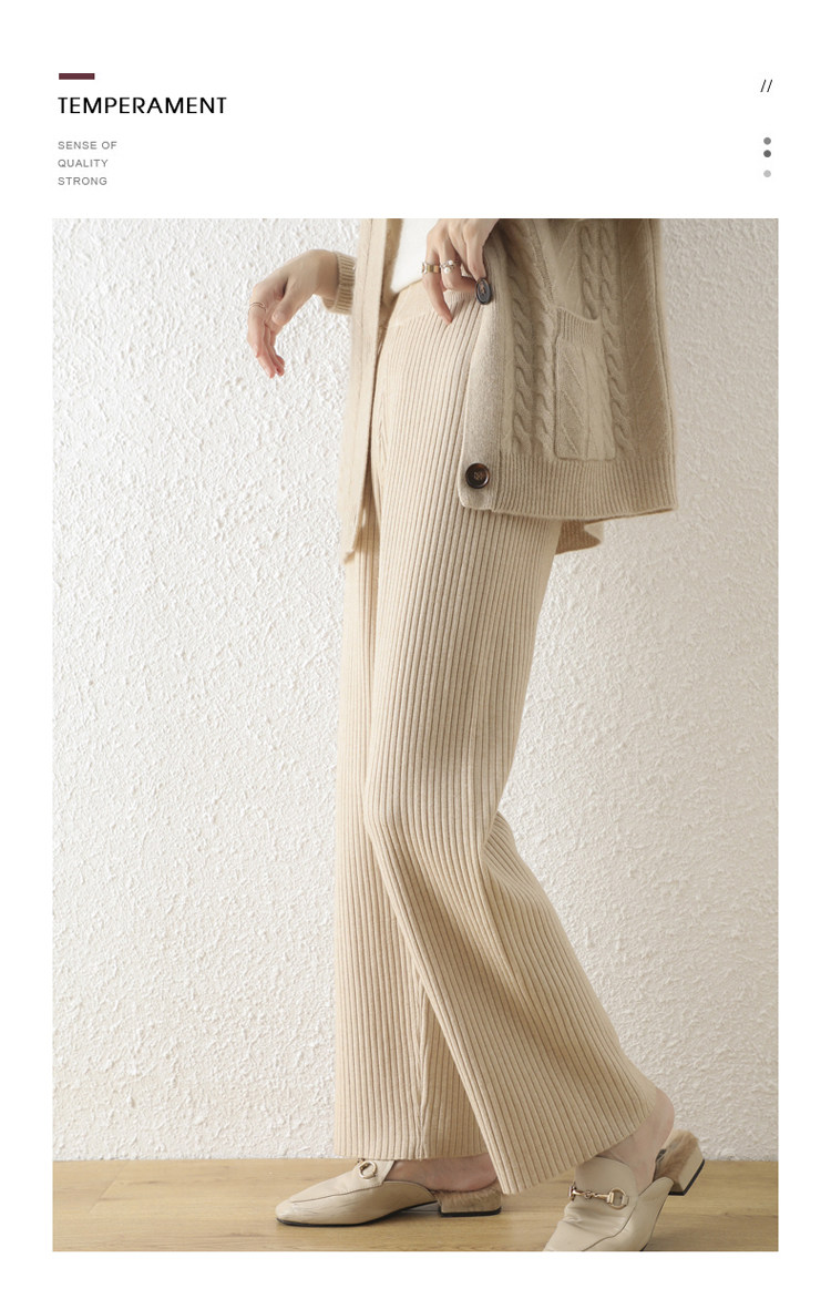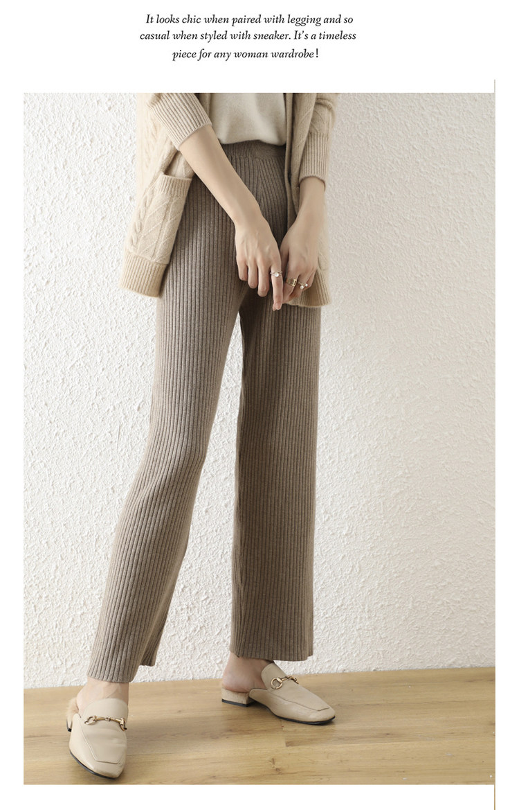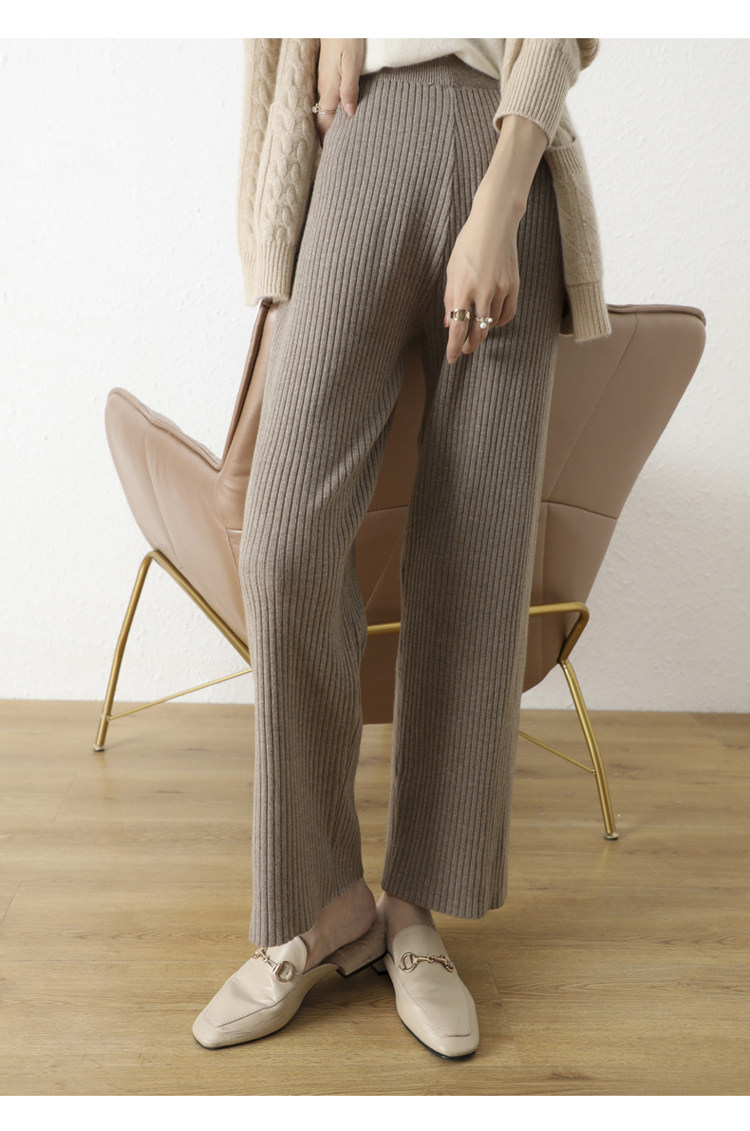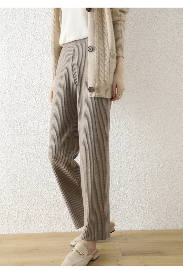 Кашемировые демисезонные трикотажные шерстяные штаны, увеличенная толщина, большой размер, высокая талия, свободный прямой крой