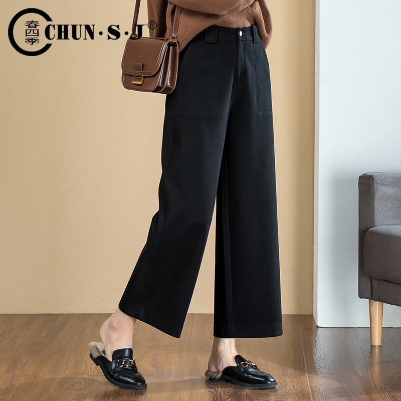Шерстяные демисезонные штаны, леггинсы, зимний костюм, высокая талия, свободный прямой крой