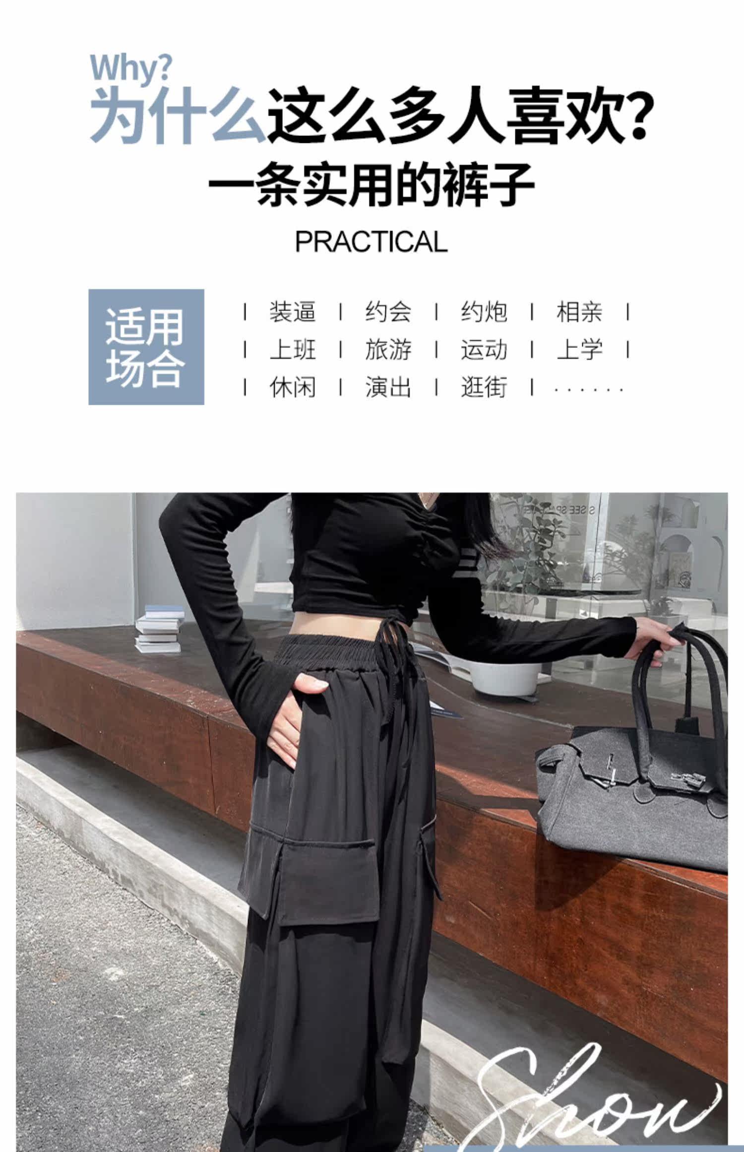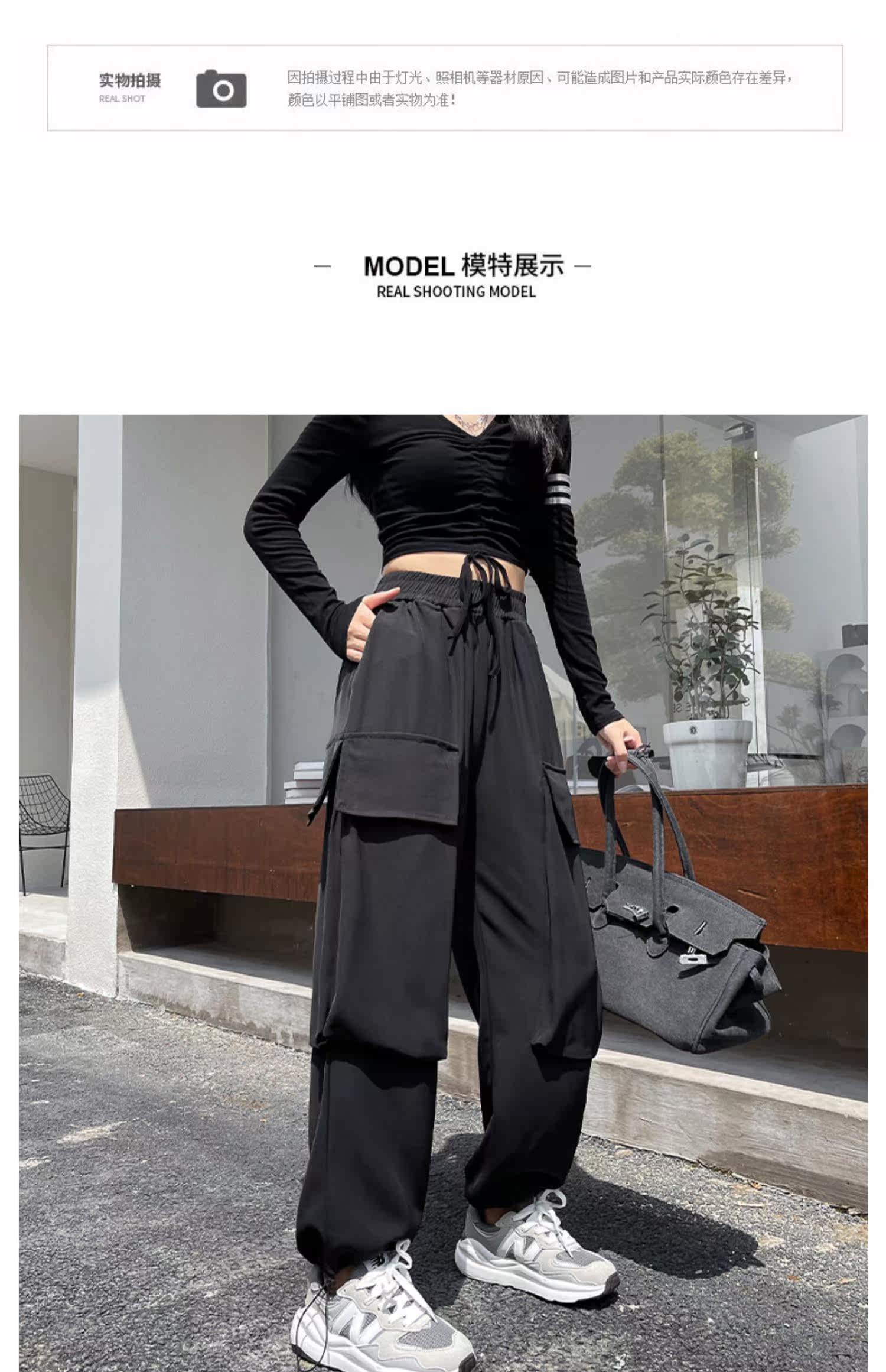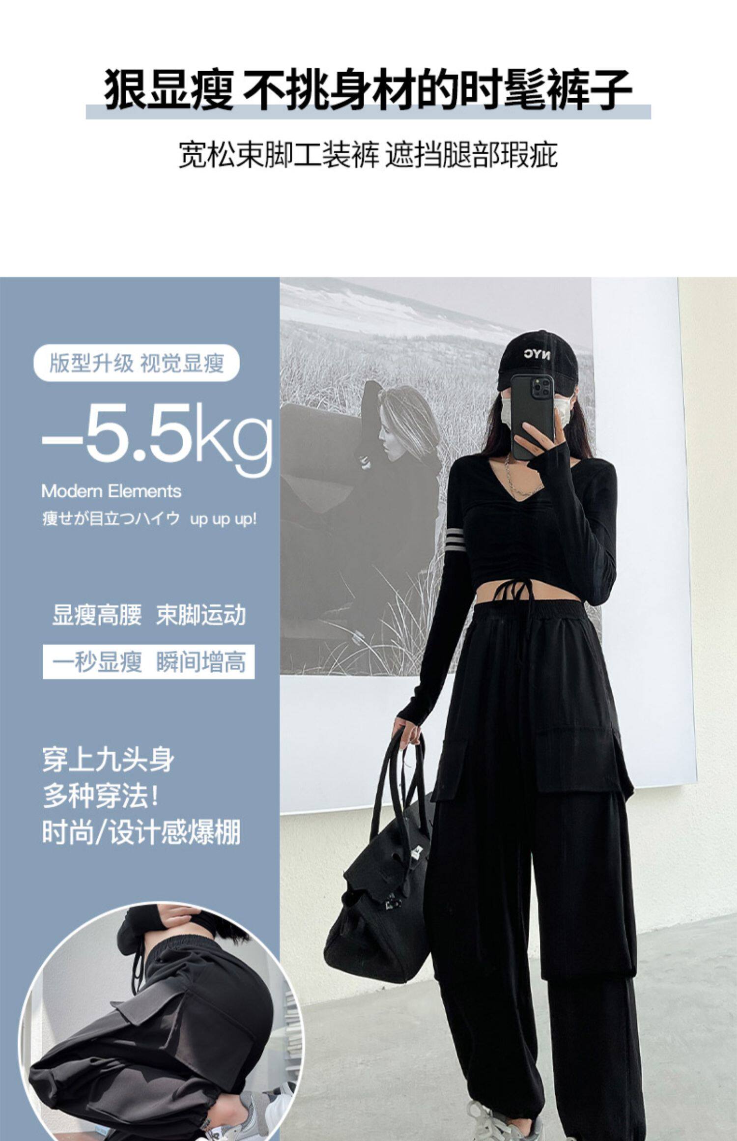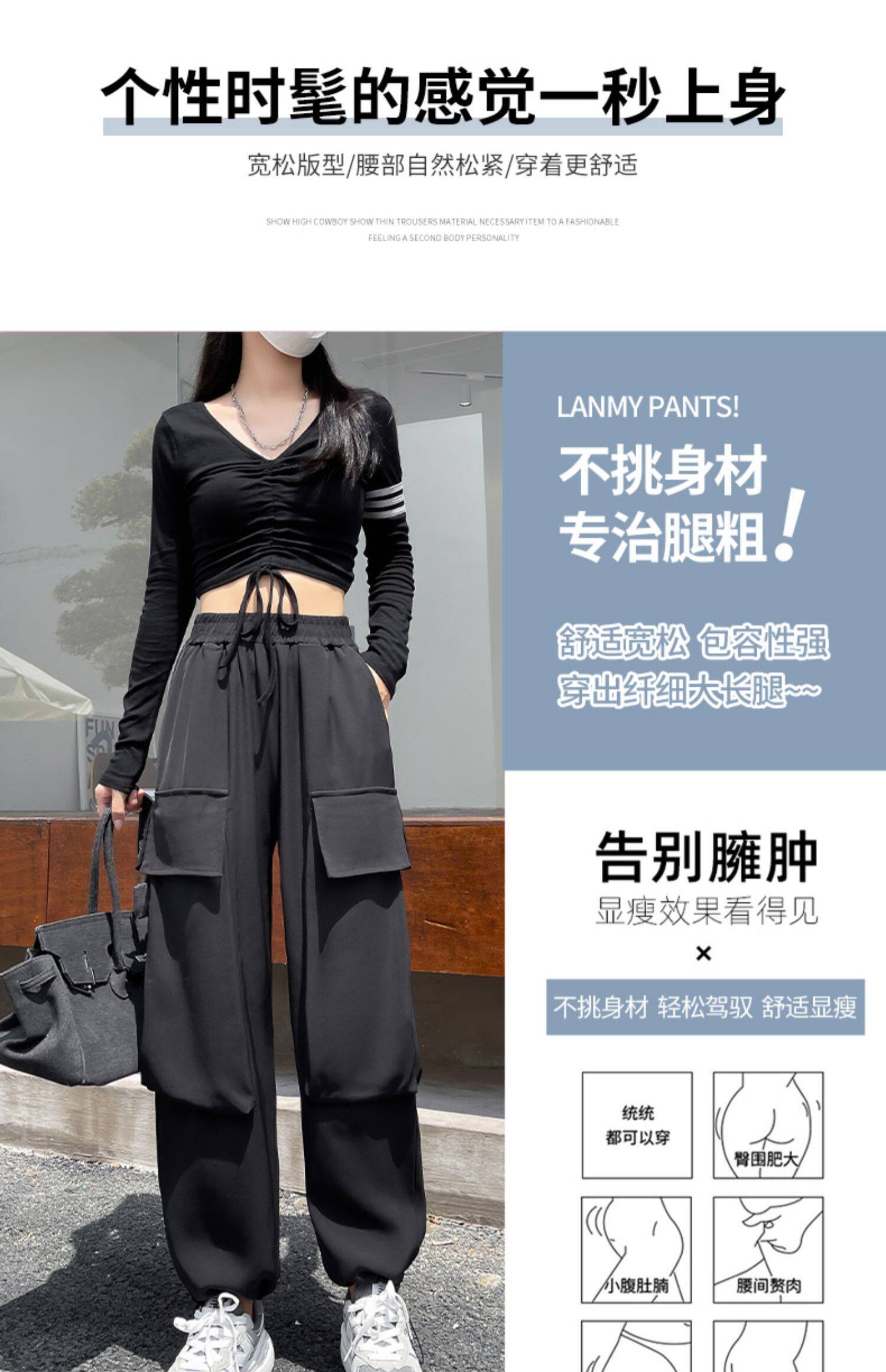 Tide, черная униформа медсестры, осенние штаны для отдыха, на шнурках, высокая талия, свободный прямой крой