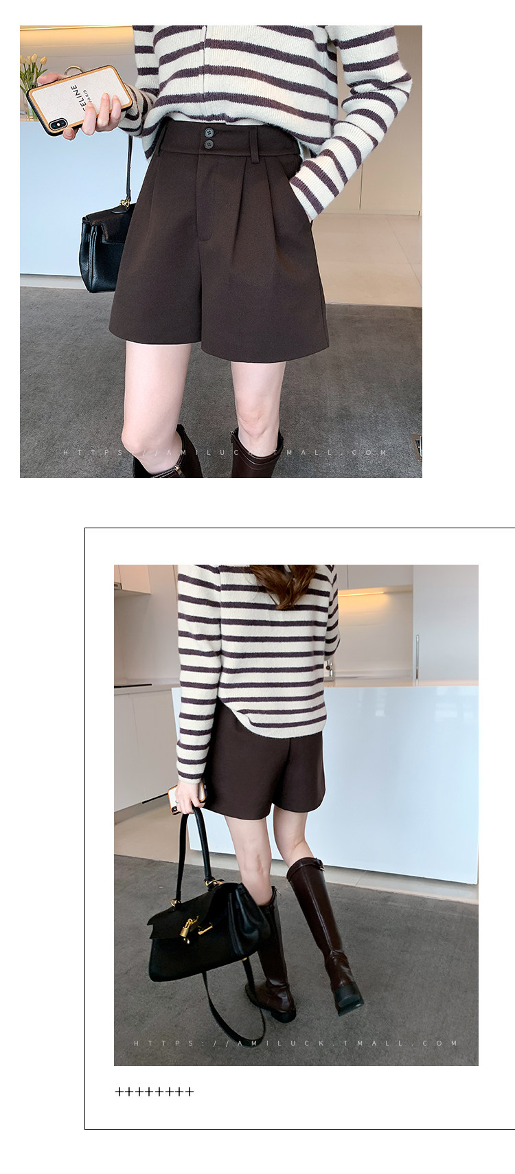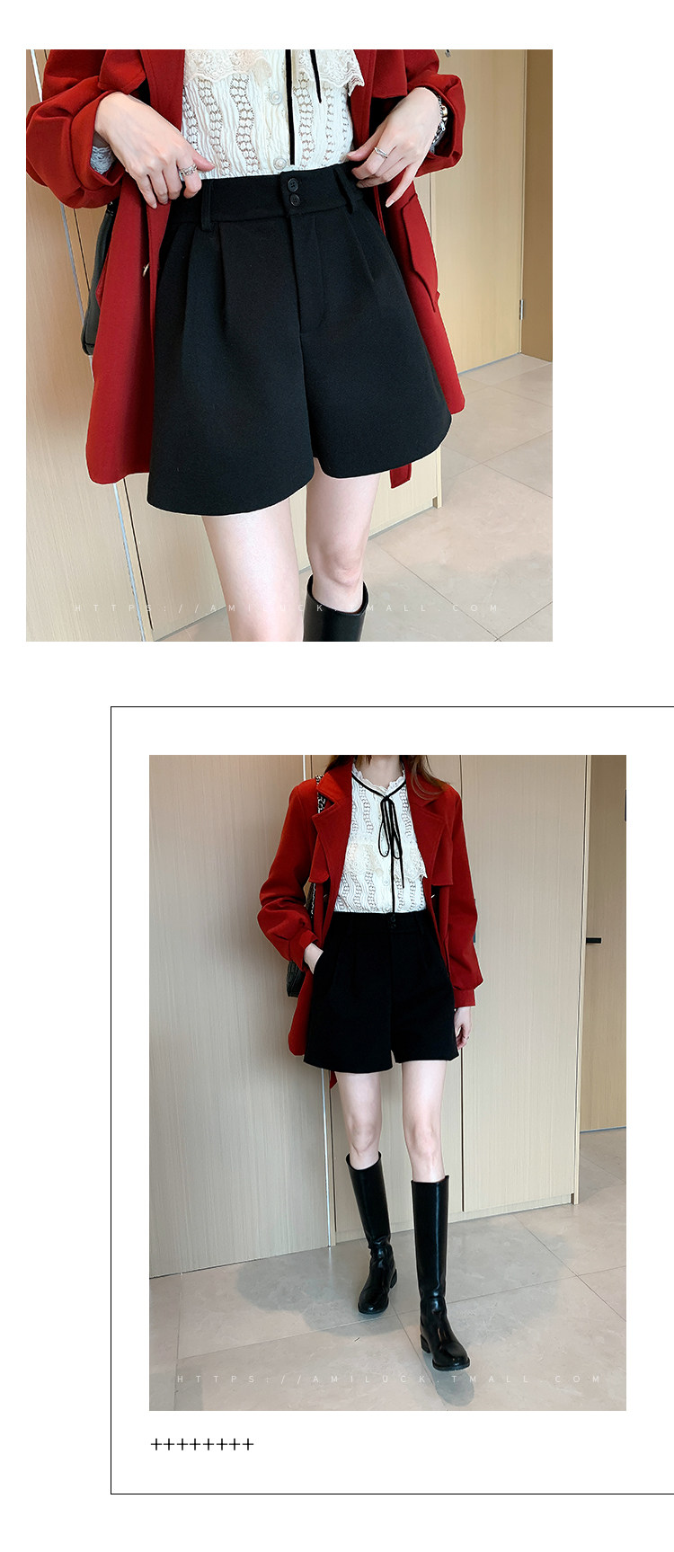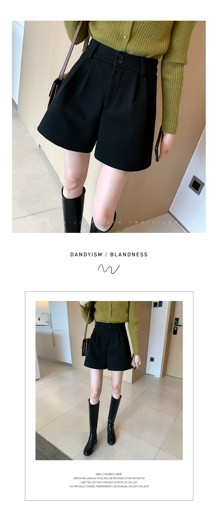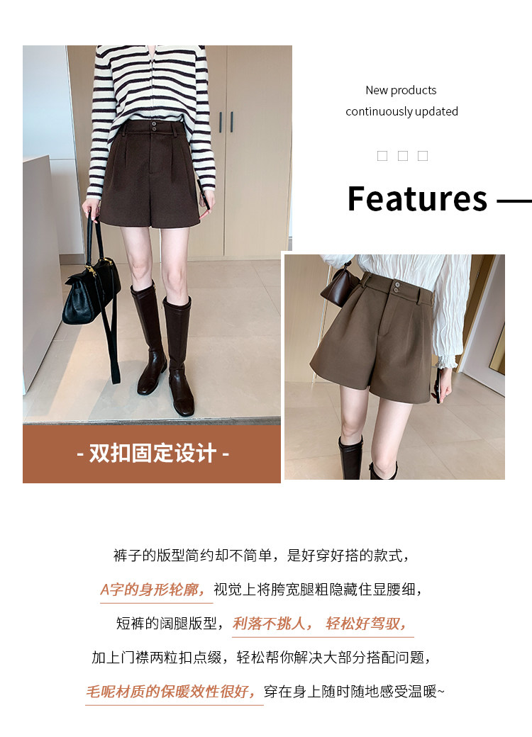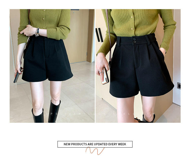 Шерстяные осенние шорты, леггинсы, черные универсальные сапоги, штаны, высокая талия, свободный крой, А-силуэт