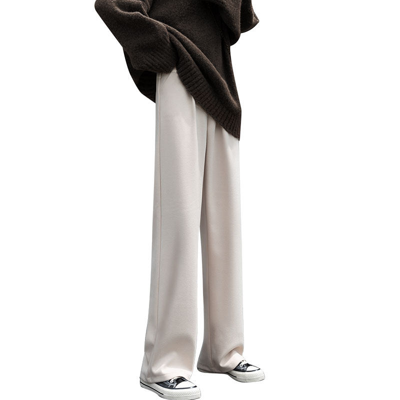Бежевые шерстяные утепленные штаны, повседневные брюки, свободный прямой крой, высокая талия