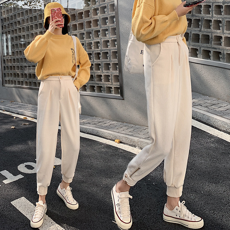 Демисезонные вельветовые штаны, джинсы с начесом, большой размер, свободный крой, по фигуре
