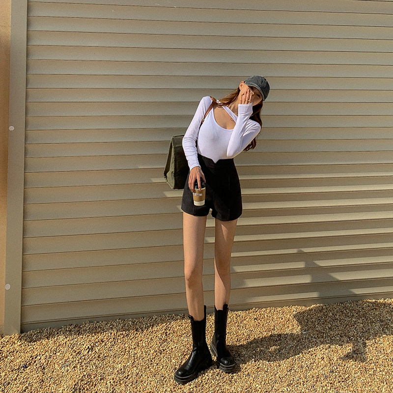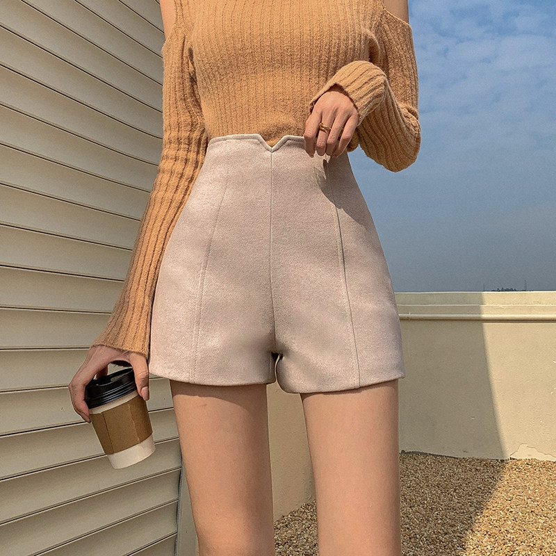 Шерстяные шорты, базовые небольшие абрикосовые зимние штаны, высокая талия, 2022, подходят для подростков, свободный крой