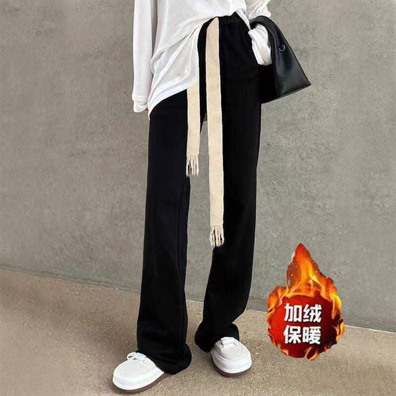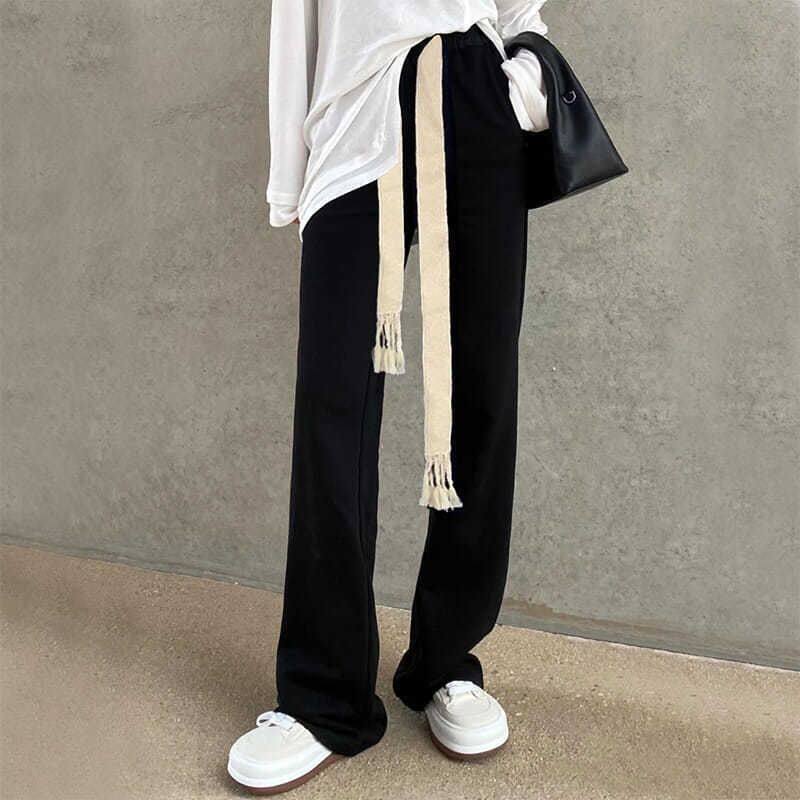 Демисезонные штаны, леггинсы, комплект для отдыха, на шнурках, высокая талия, свободный прямой крой
