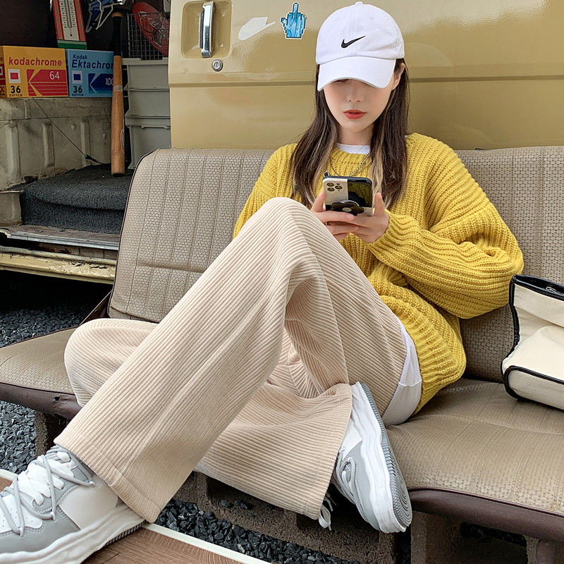 Вельветовые демисезонные штаны, утепленные белые бархатные джинсы с начесом, свободный прямой крой, подходят для подростков