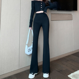 Штаны-клёш, утепленные эластичные черные длинные штаны для отдыха, высокая талия, подходит для подростков
