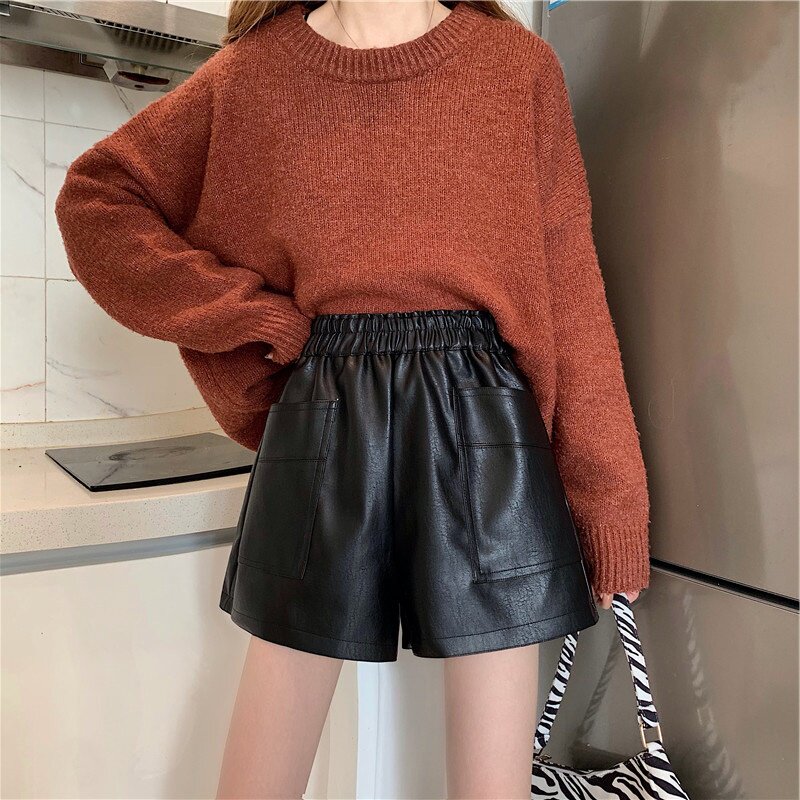 Шорты, демисезонные осенние базовые зимние штаны, большой размер, свободный крой, высокая талия