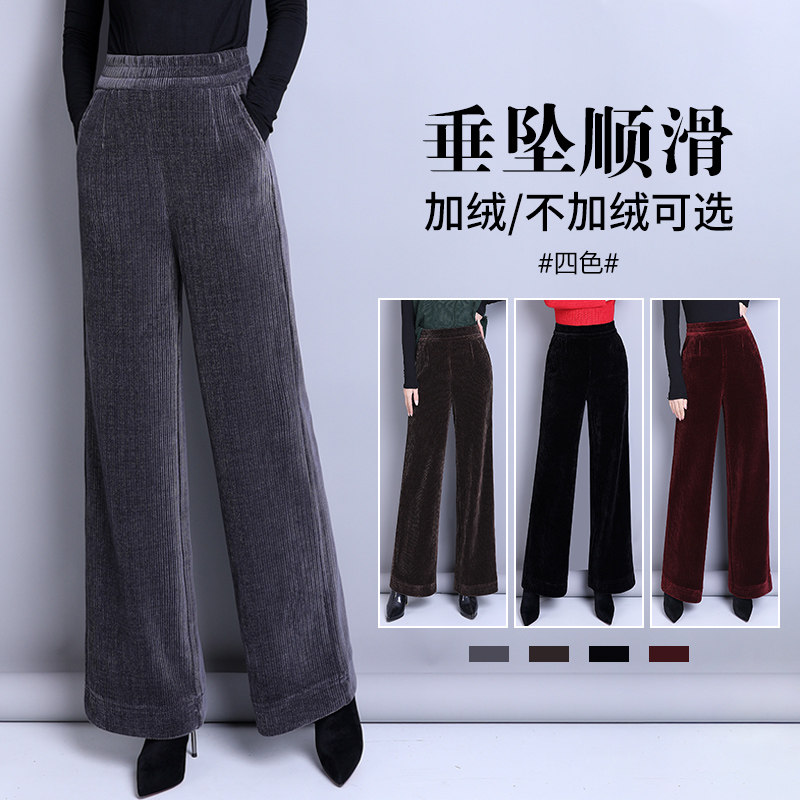 Флисовые вельветовые демисезонные штаны, леггинсы, коллекция 2023, увеличенная толщина, высокая талия, свободный прямой крой