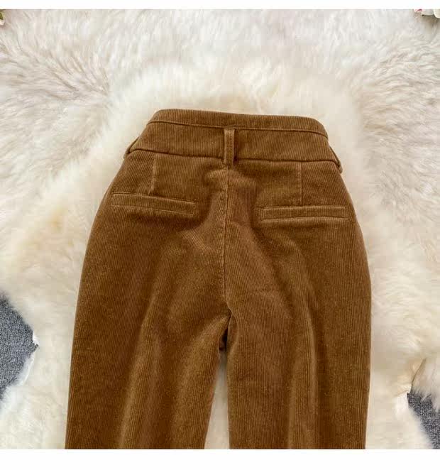 Коричневые ретро вельветовые штаны, демисезонные штаны-клёш, универсальные леггинсы, высокая талия, свободный прямой крой