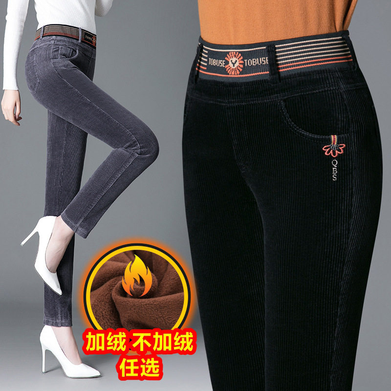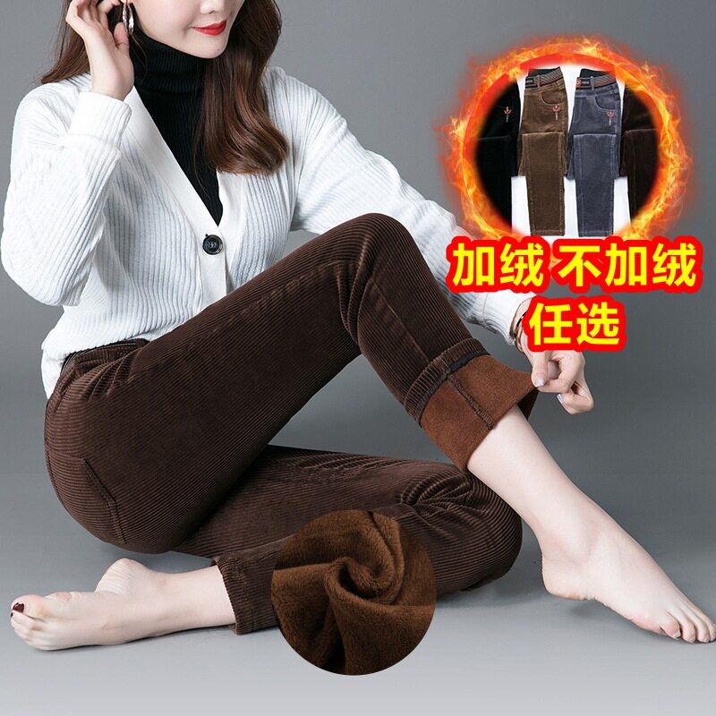 Флисовые вельветовые демисезонные бархатные штаны, коллекция 2021, высокая талия, большой размер, свободный прямой крой