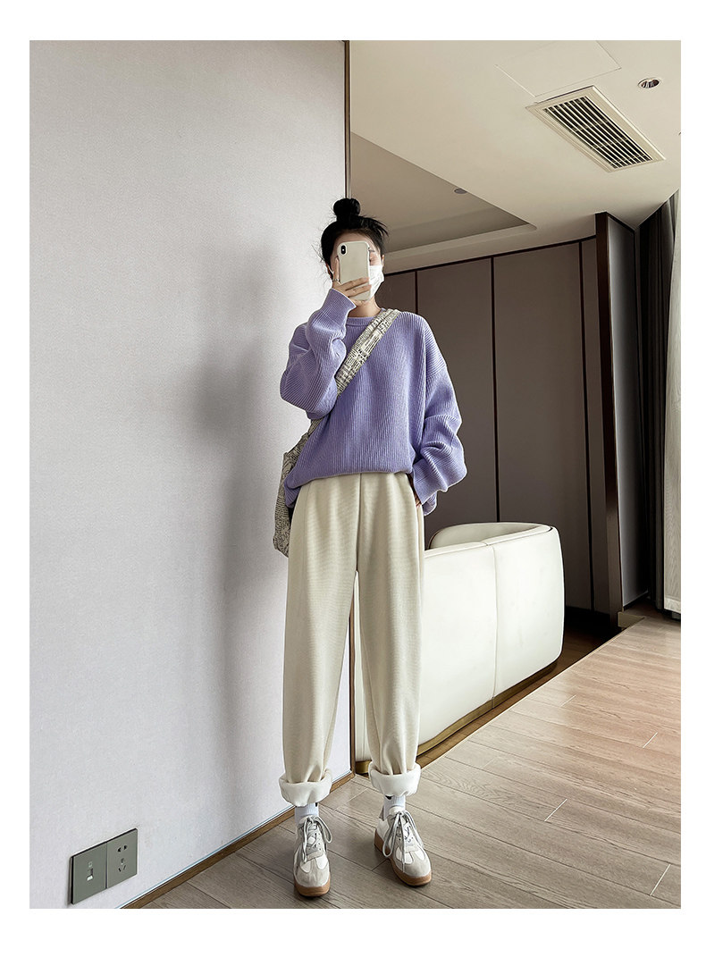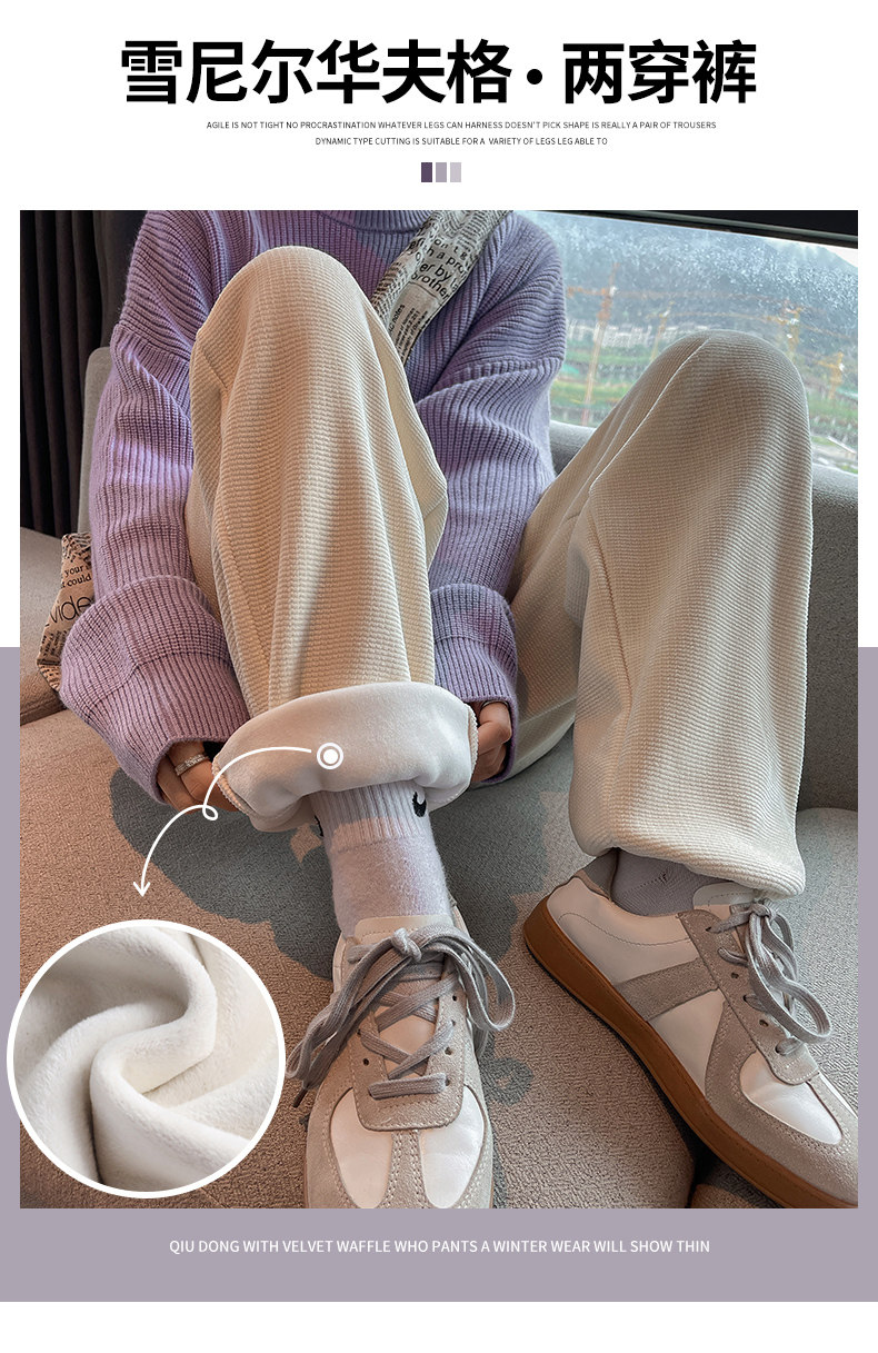 Флисовые демисезонные штаны, белые леггинсы, высокая талия, свободный прямой крой