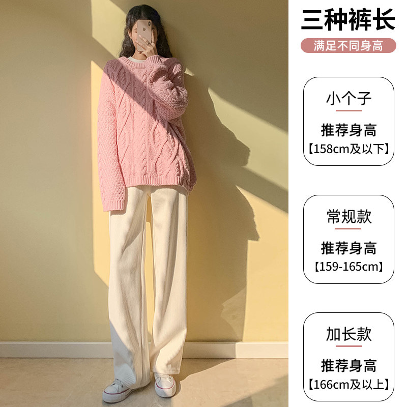 Белые осенние демисезонные утепленные вельветовые штаны для отдыха, высокая талия, подходит для подростков
