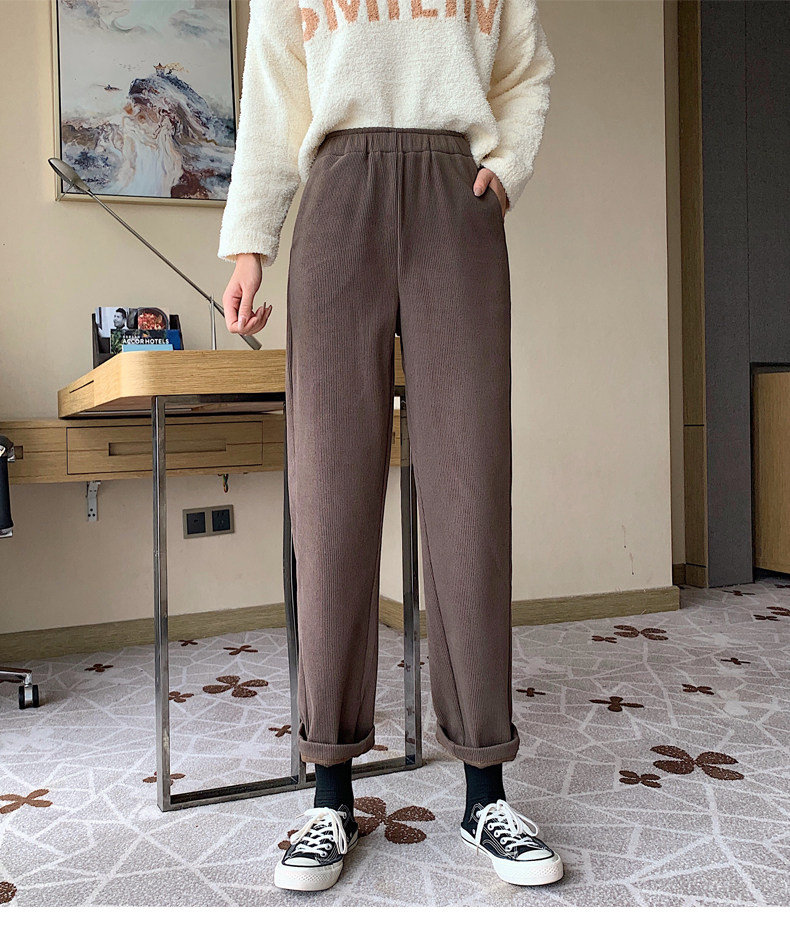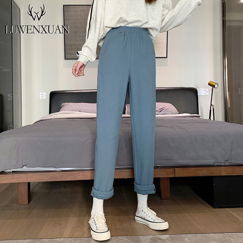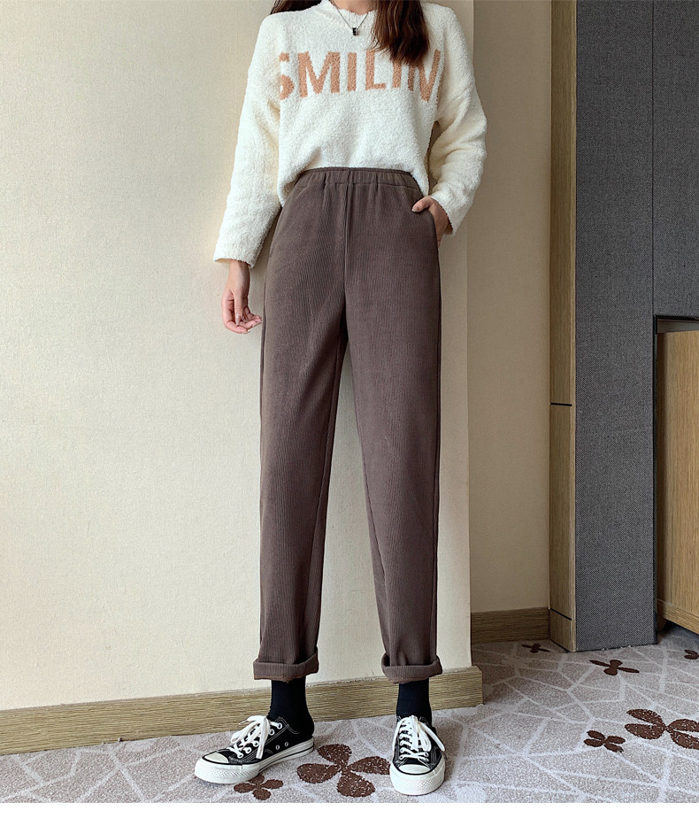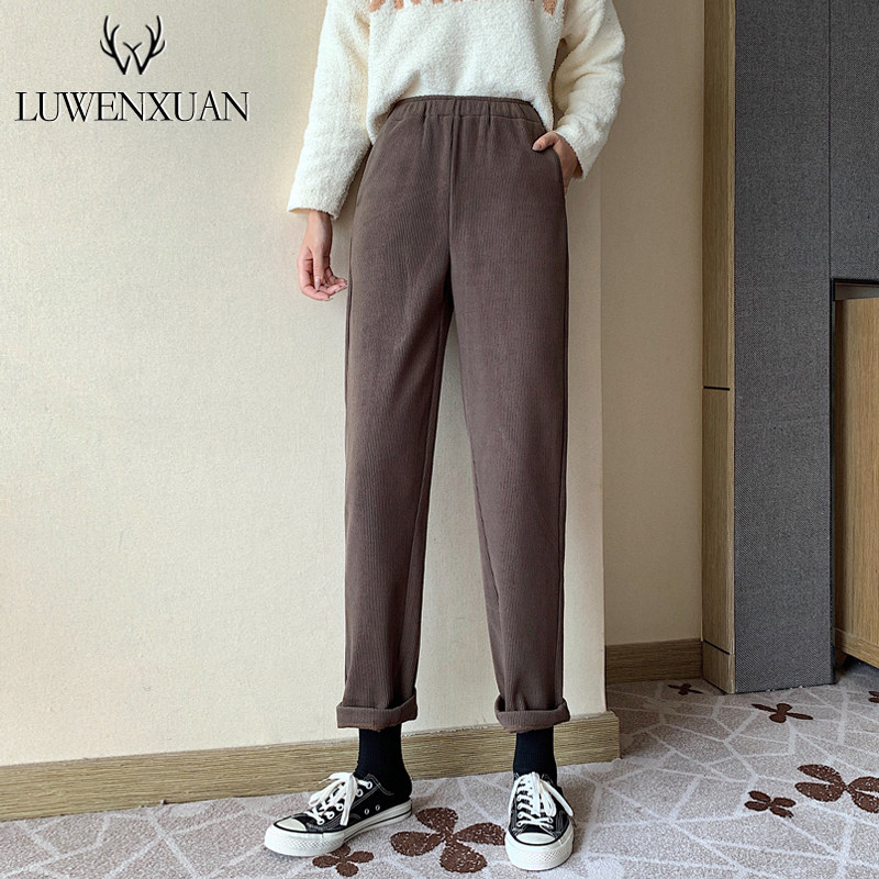 Вельветовые приталенные демисезонные штаны для отдыха, утепленные леггинсы, высокая талия, 2021 года