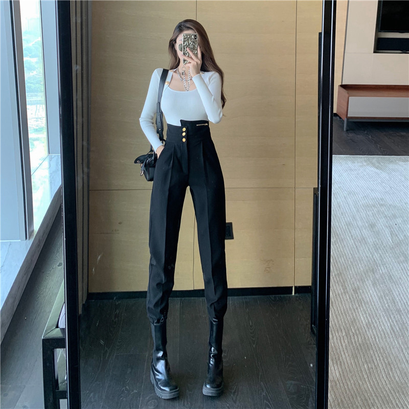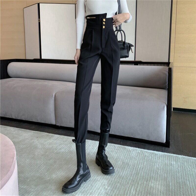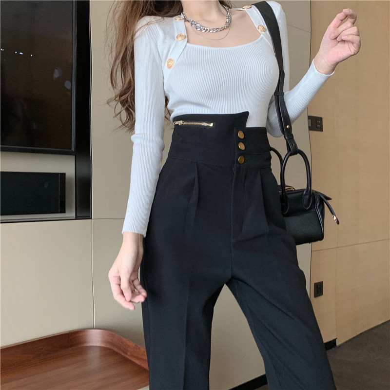 Дизайнерские штаны, осенний костюм, тренд сезона, высокая талия