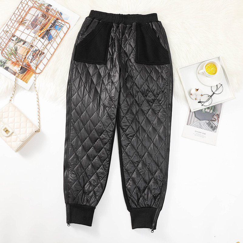 Зимние модные удерживающие тепло штаны с пухом с ромбовидным узором, 2021 года, оверсайз, в корейском стиле, большой размер