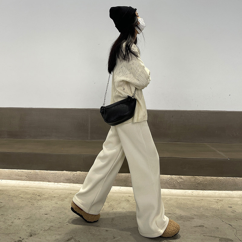 Бежевые трикотажные демисезонные штаны, утепленные леггинсы для отдыха, коллекция 2022, высокая талия, изысканный стиль