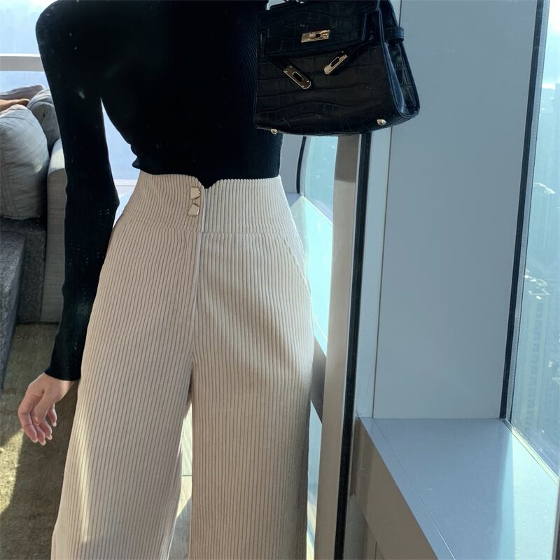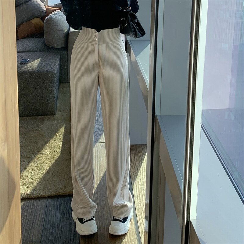 Вельветовые демисезонные штаны, весенние бархатные леггинсы, высокая талия, свободный прямой крой