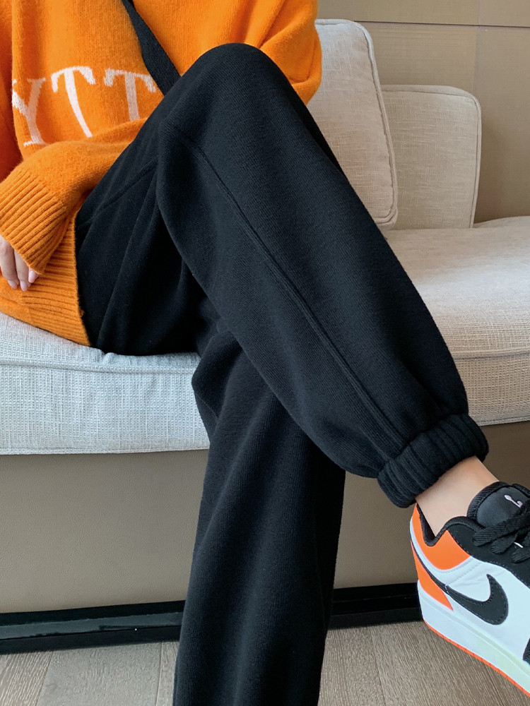 Осенние черные хлопковые штаны для отдыха, в корейском стиле, свободный крой, по фигуре