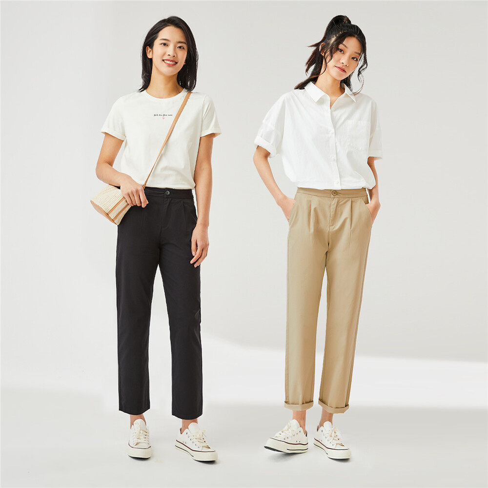 Хлопковые штаны, свободный прямой крой, средняя посадка