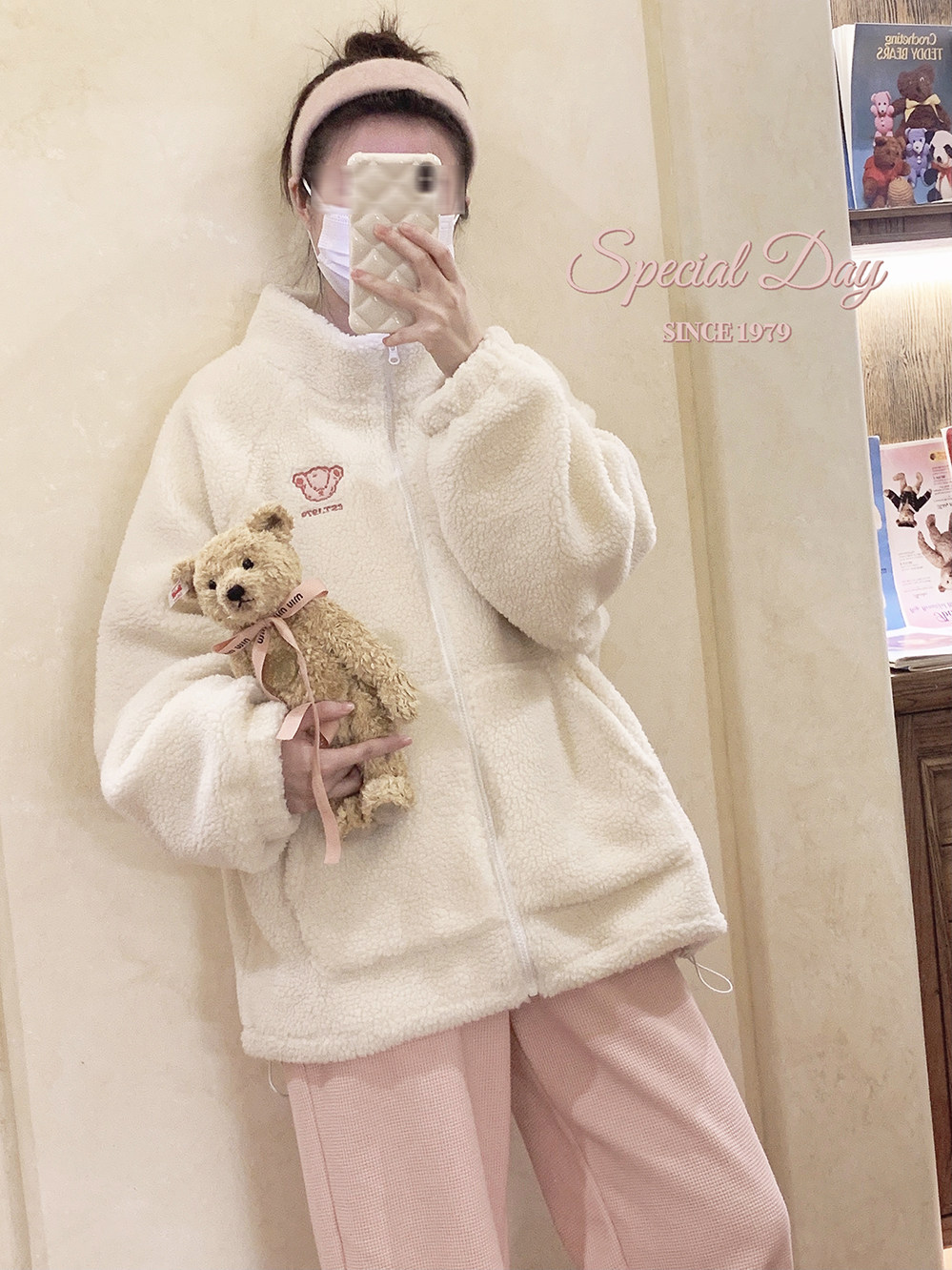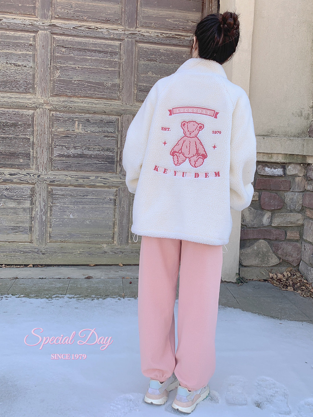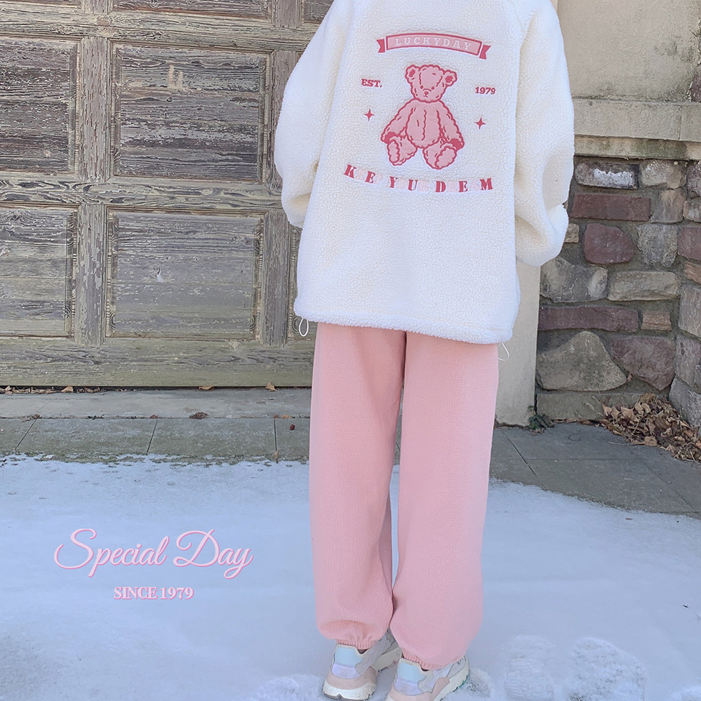 Спортивные розовые флисовые штаны, свободный прямой крой