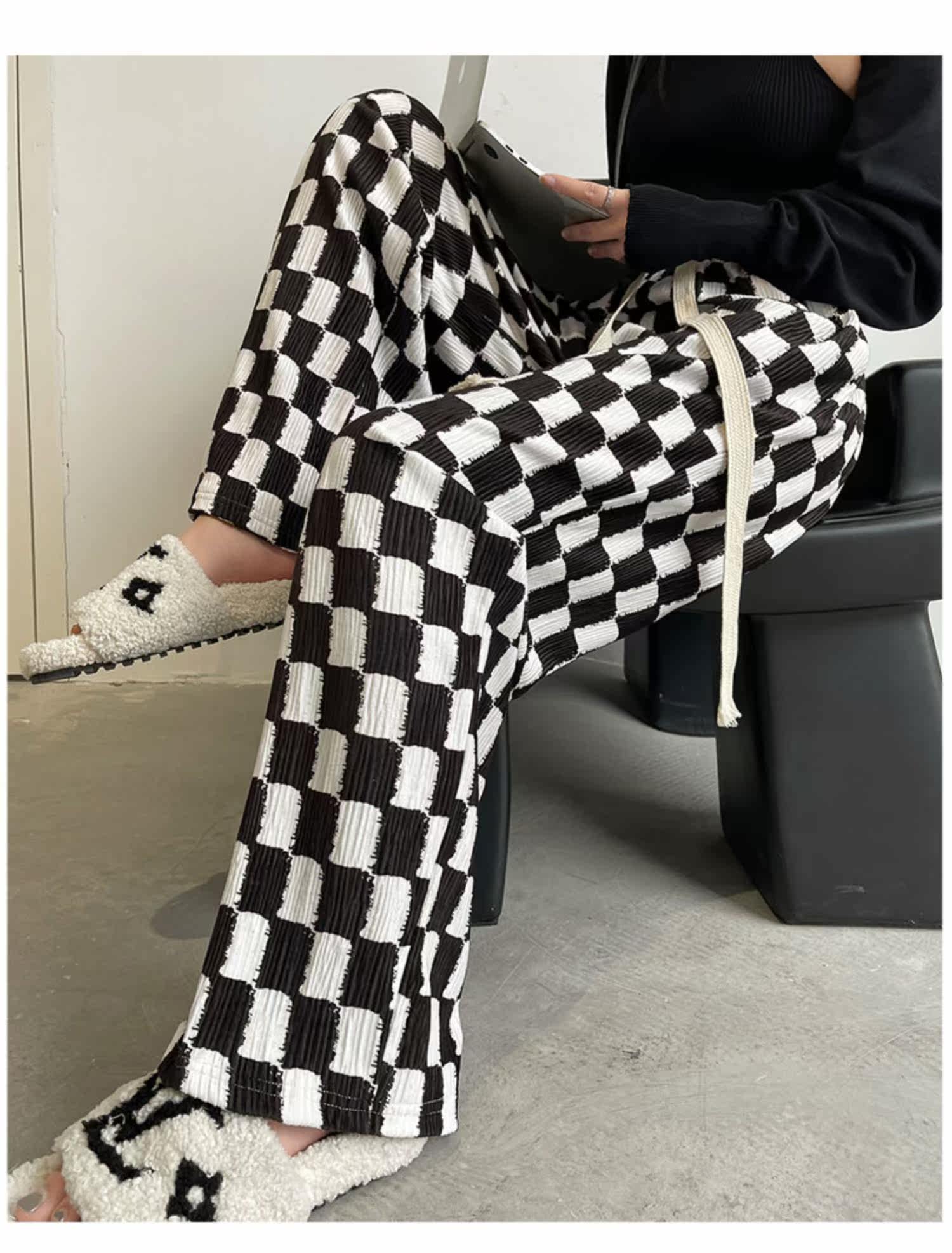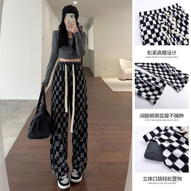 Шахматы, весенние штаны для отдыха, коллекция 2022, городской стиль, свободный прямой крой