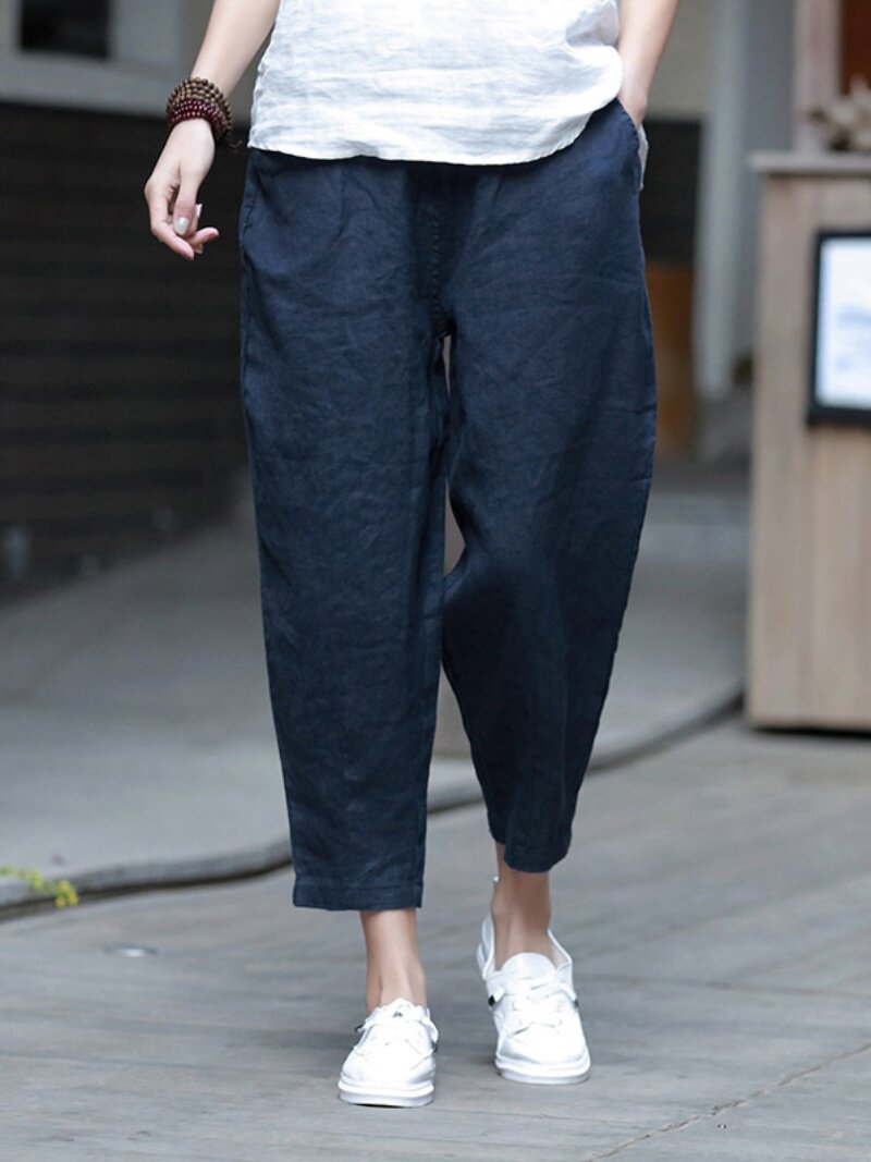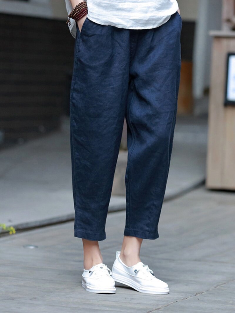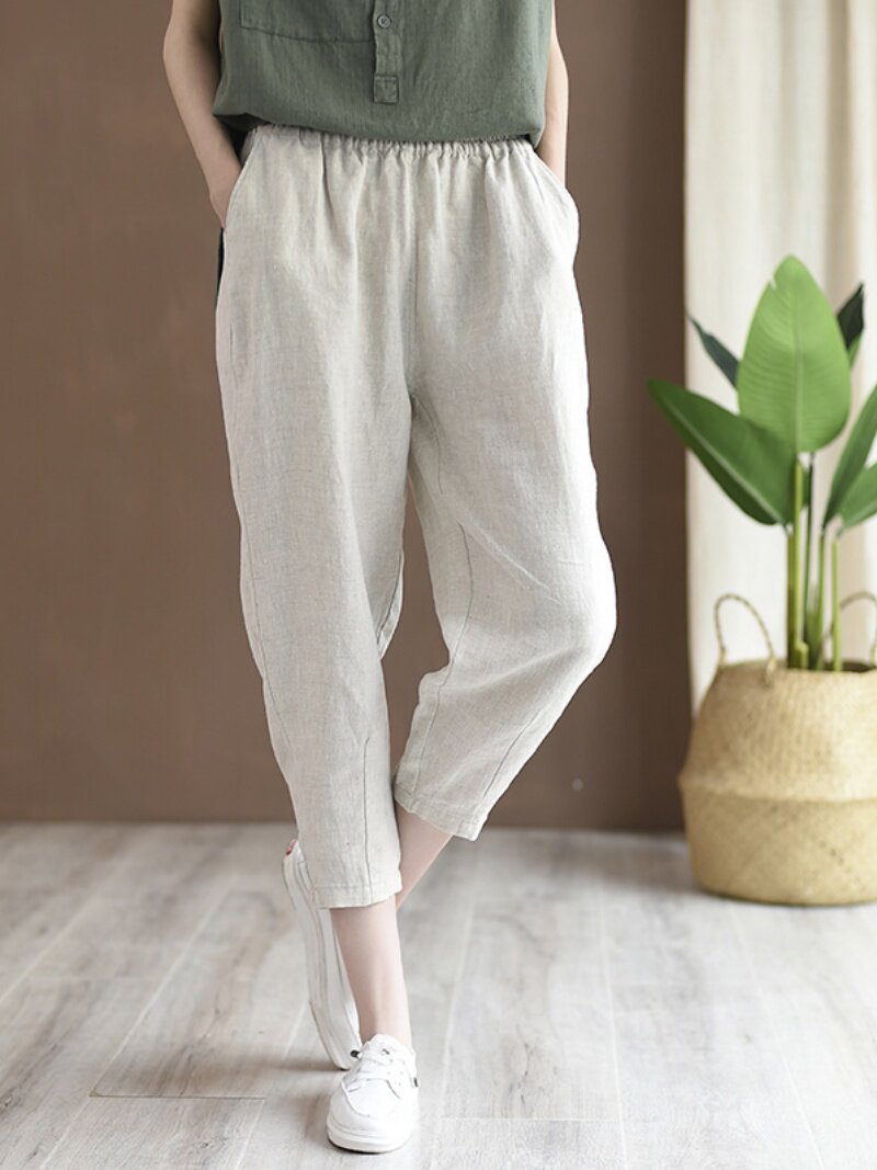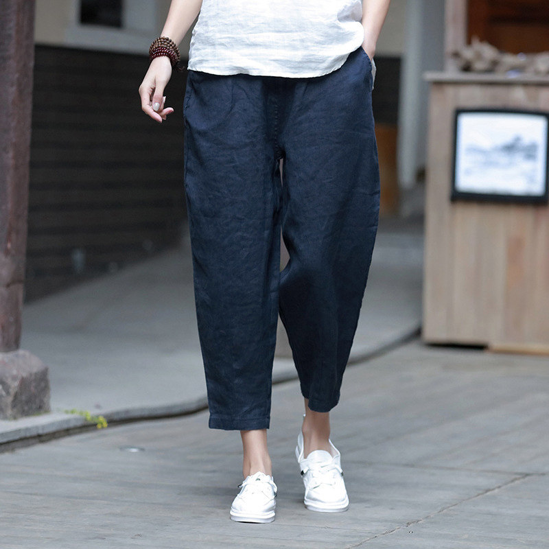 Штаны для отдыха, из хлопка и льна, большой размер