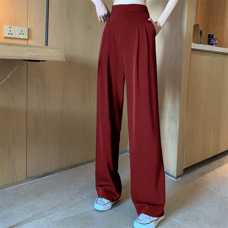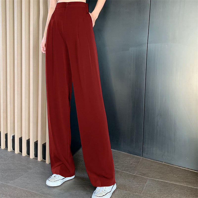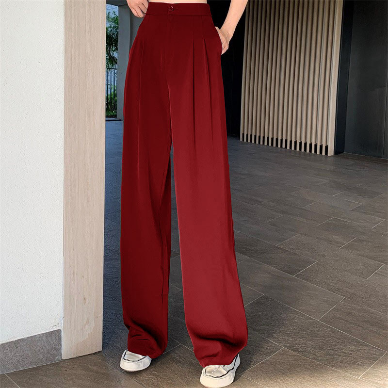 Бордовые штаны, шифоновый костюм, высокая талия, свободный прямой крой