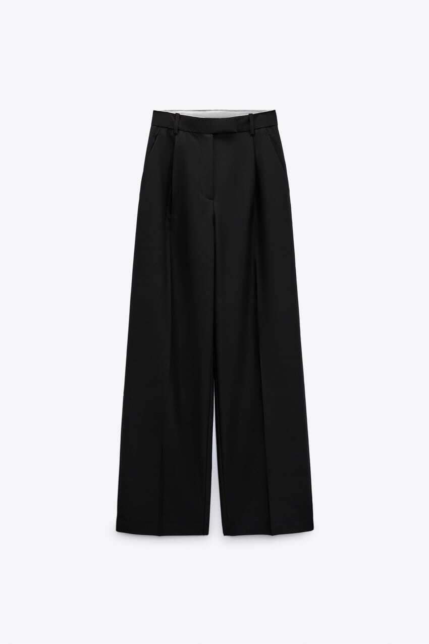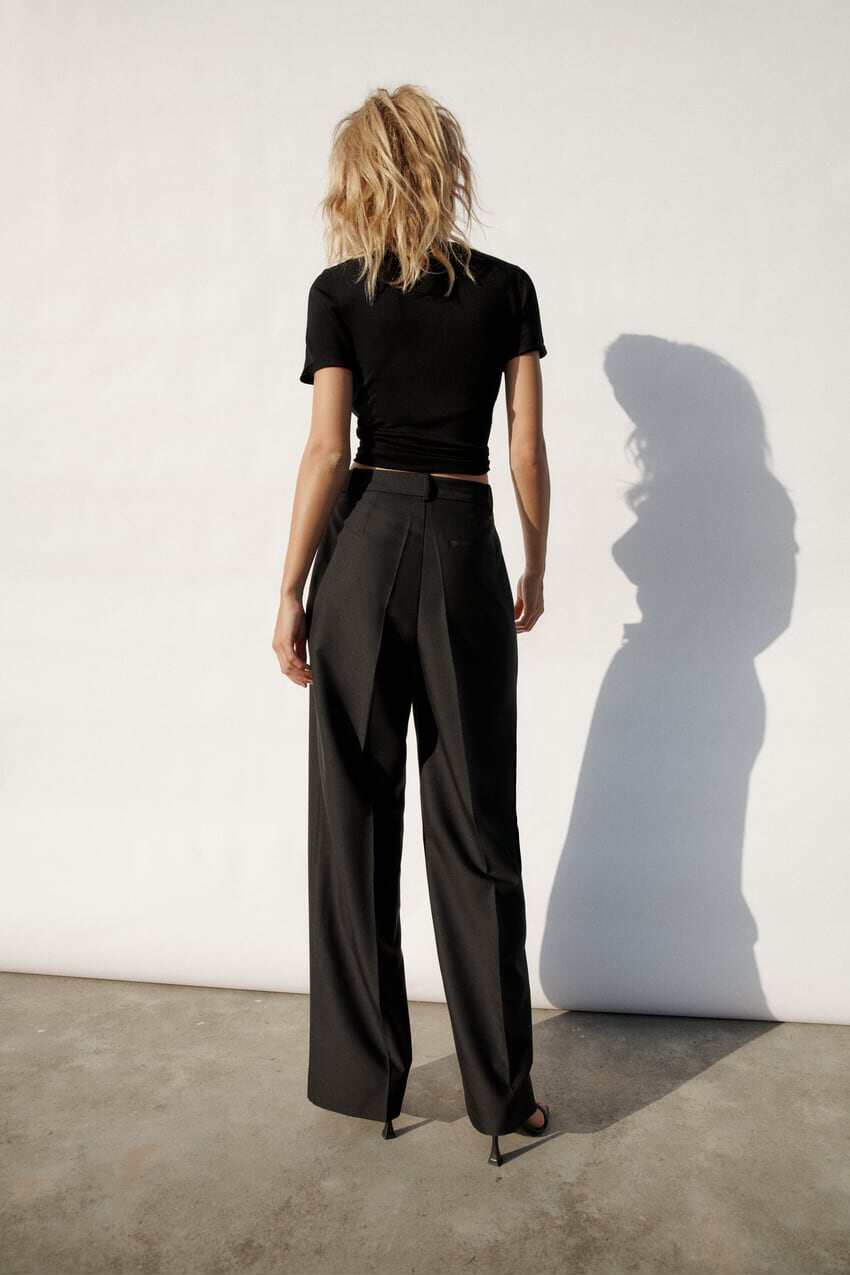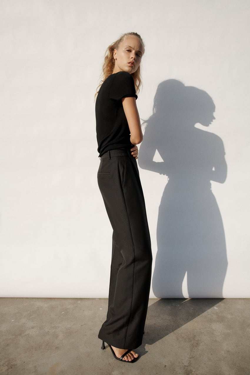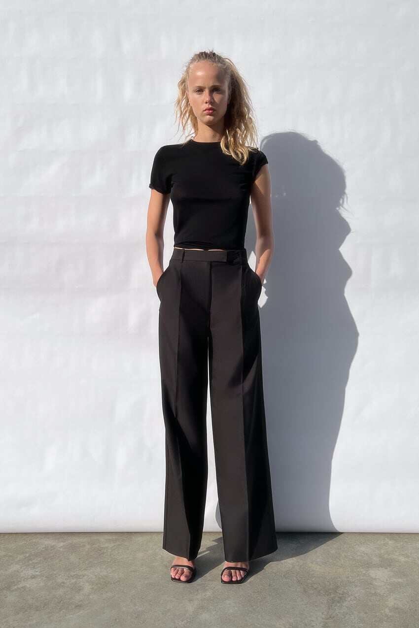 Черные штаны, дизайнерский весенний костюм, высокая талия, тренд сезона