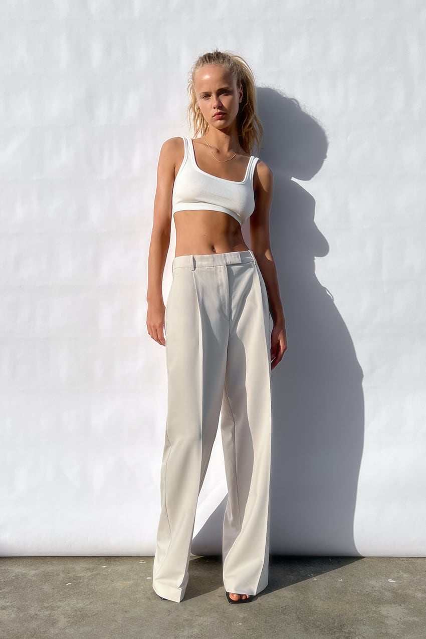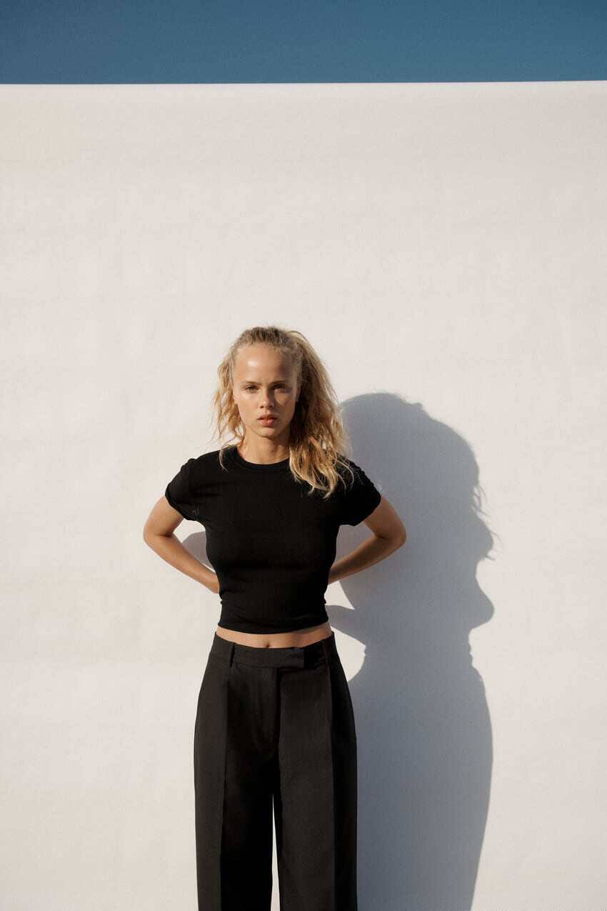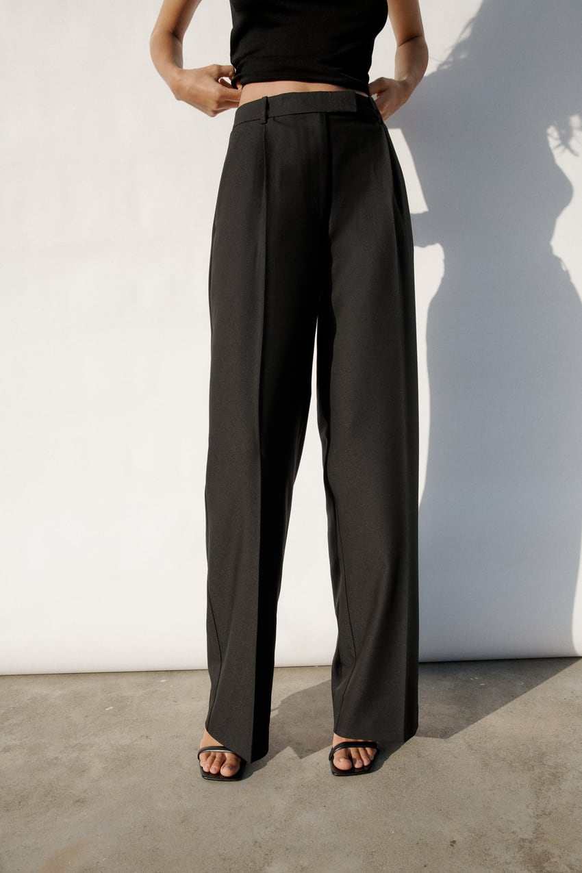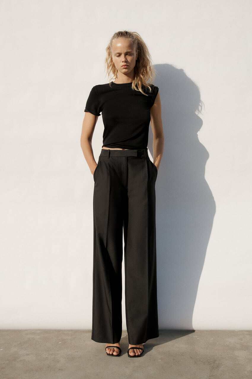 Черные штаны, дизайнерский весенний костюм, высокая талия, тренд сезона