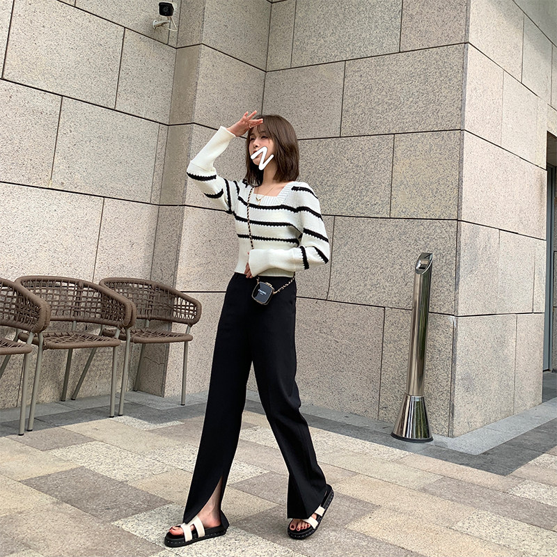 Черные штаны, подходит для подростков, высокая талия, свободный прямой крой