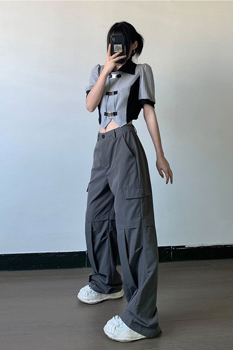 Штаны, высокая талия, оверсайз, свободный крой