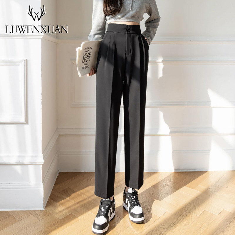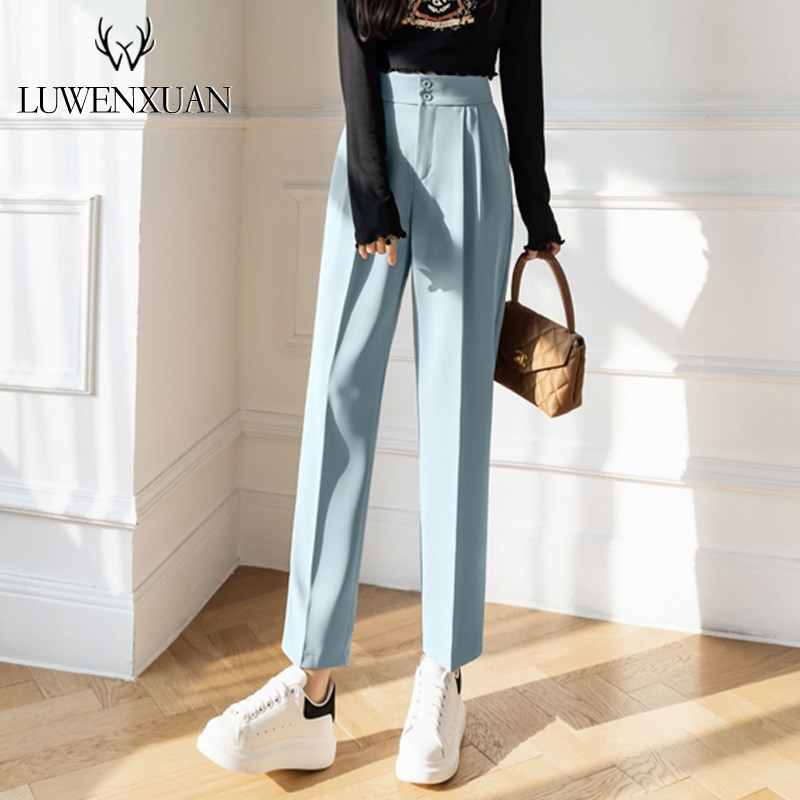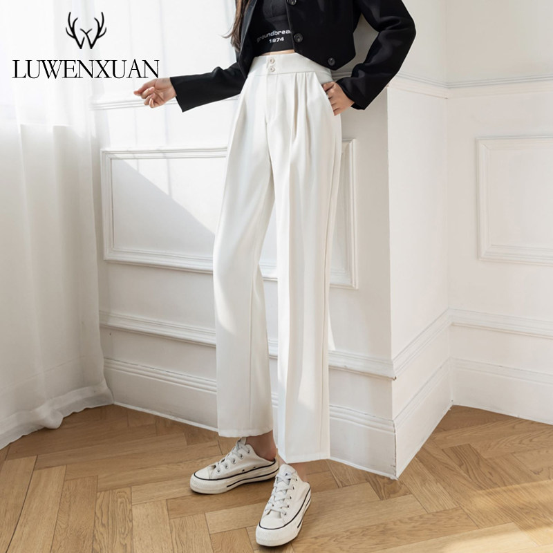 Костюм, летние приталенные штаны, коллекция 2022, свободный прямой крой, высокая талия