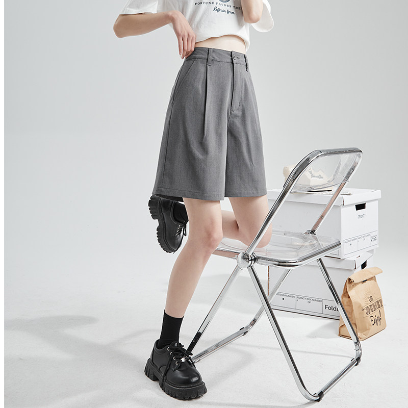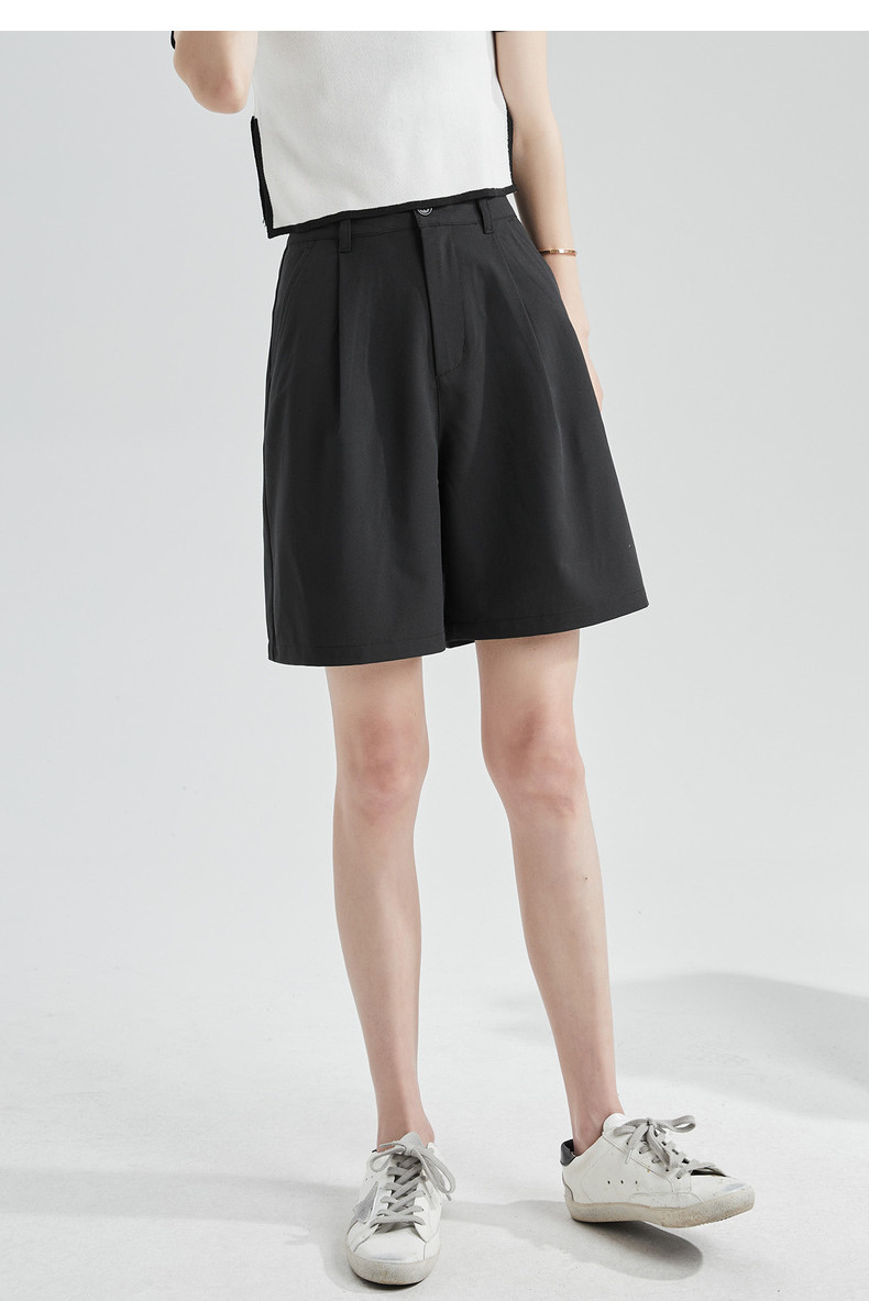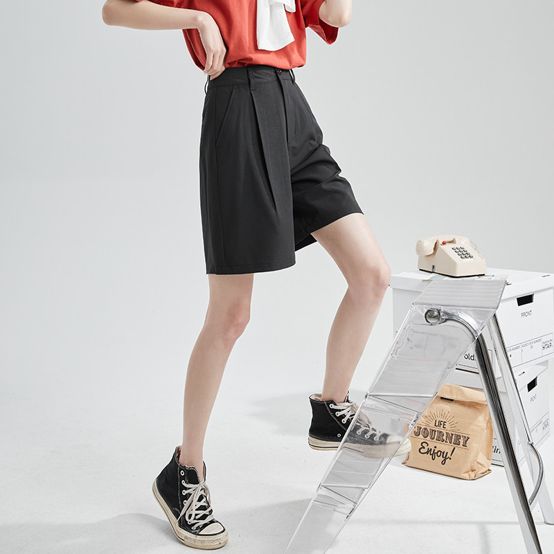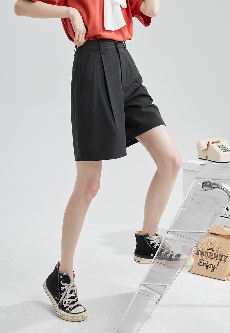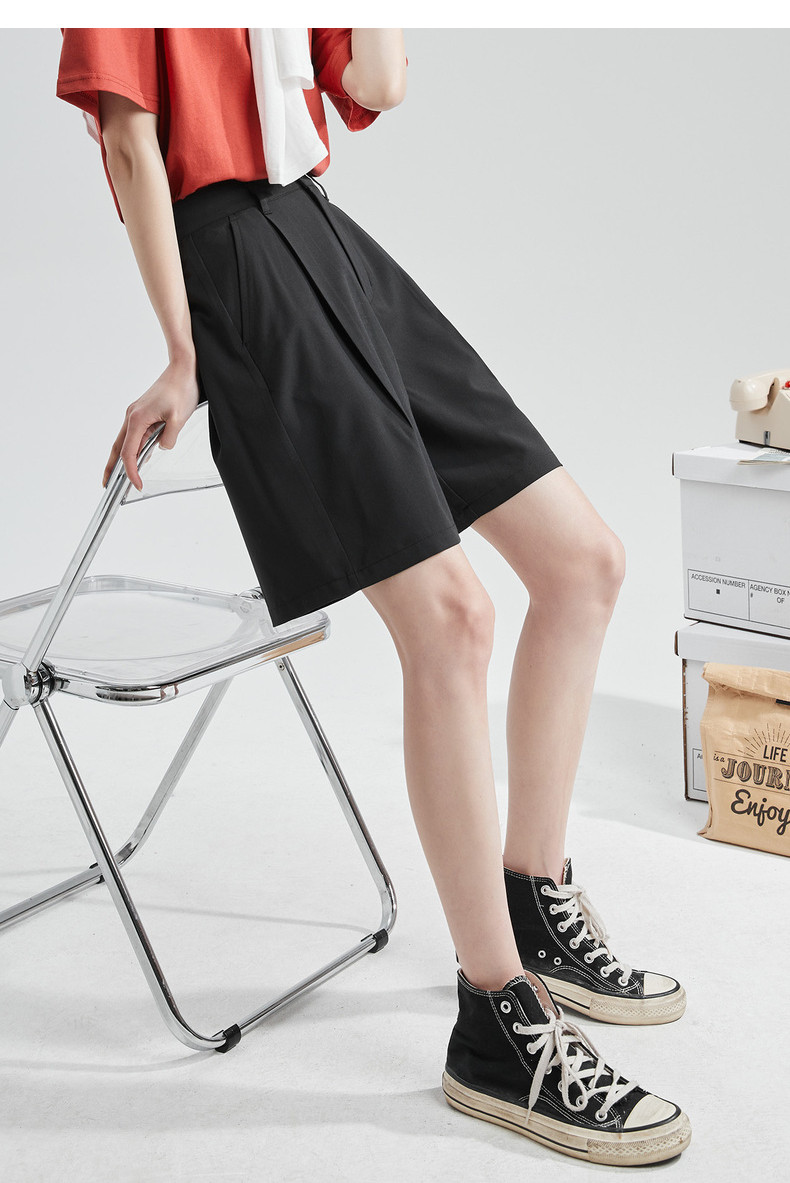 Летний костюм, штаны, приталенные черные шорты для отдыха, высокая талия, свободный крой