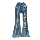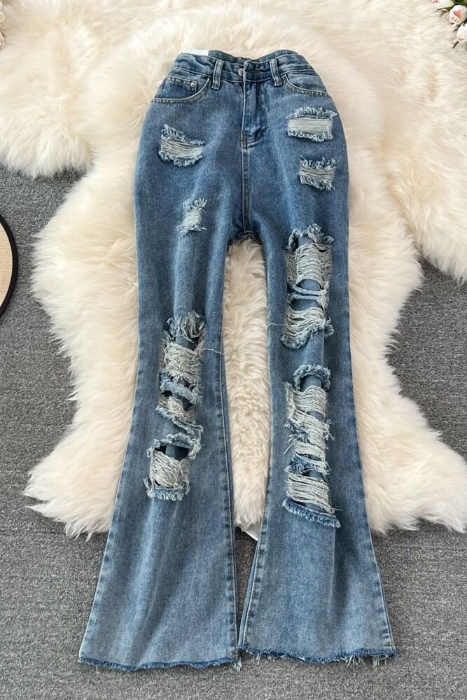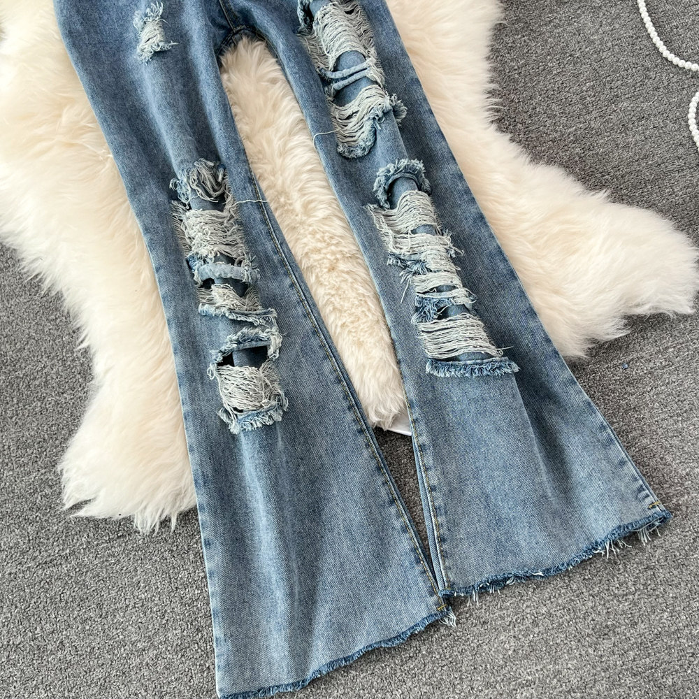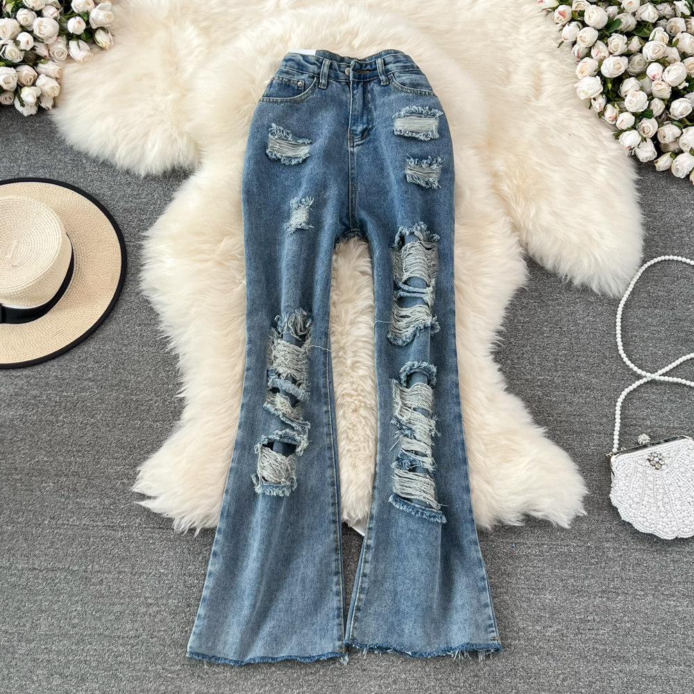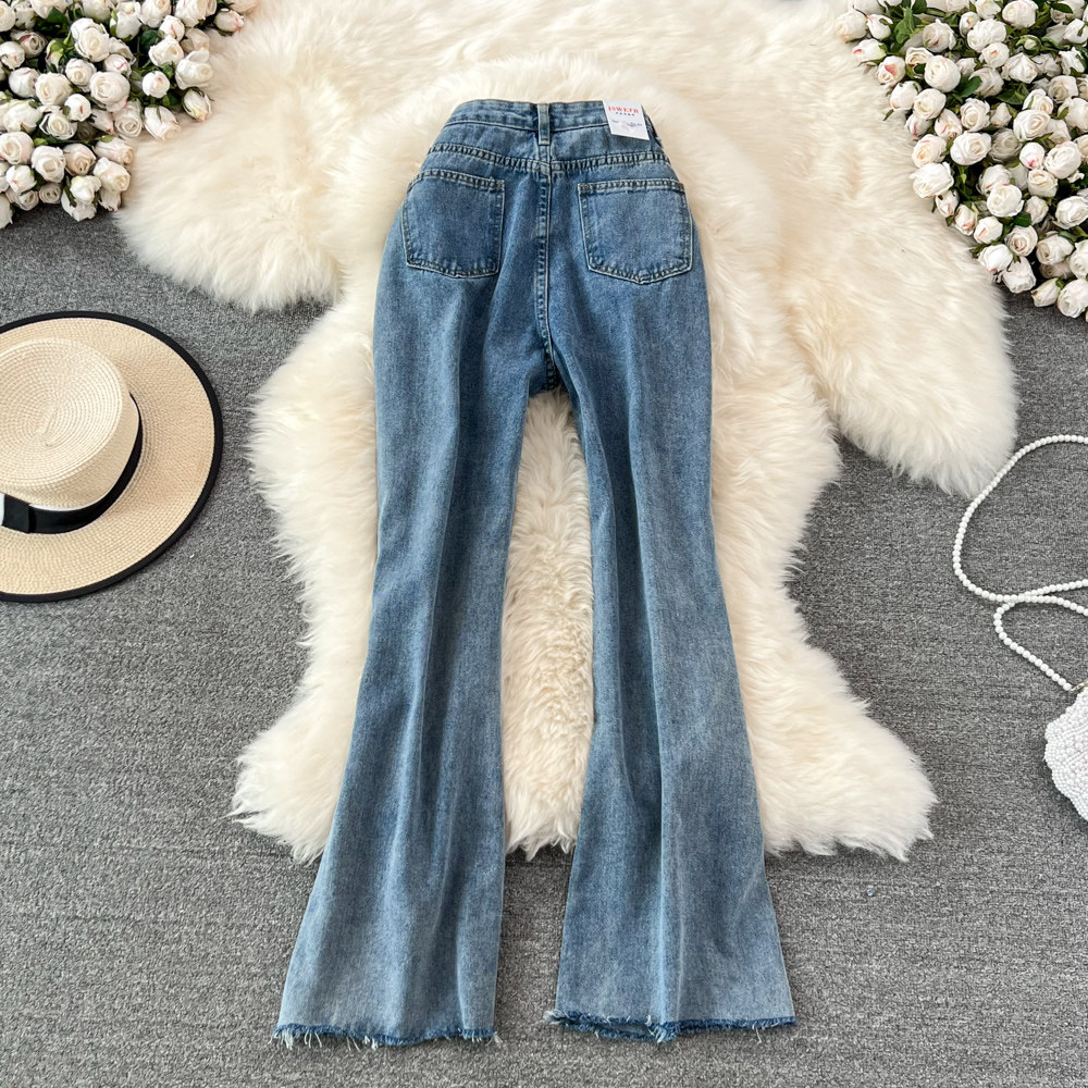 Джинсовые штаны-клёш, весенние приталенные штаны, мегафон, высокая талия
