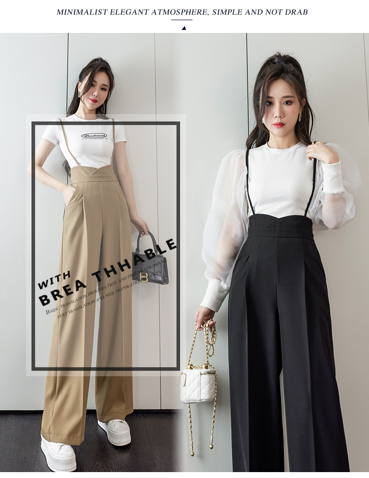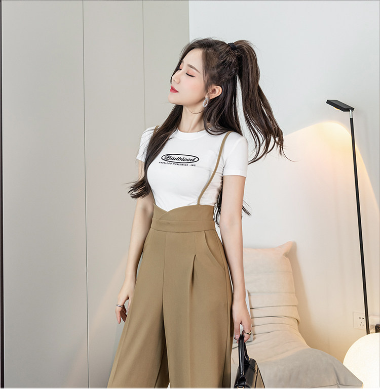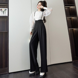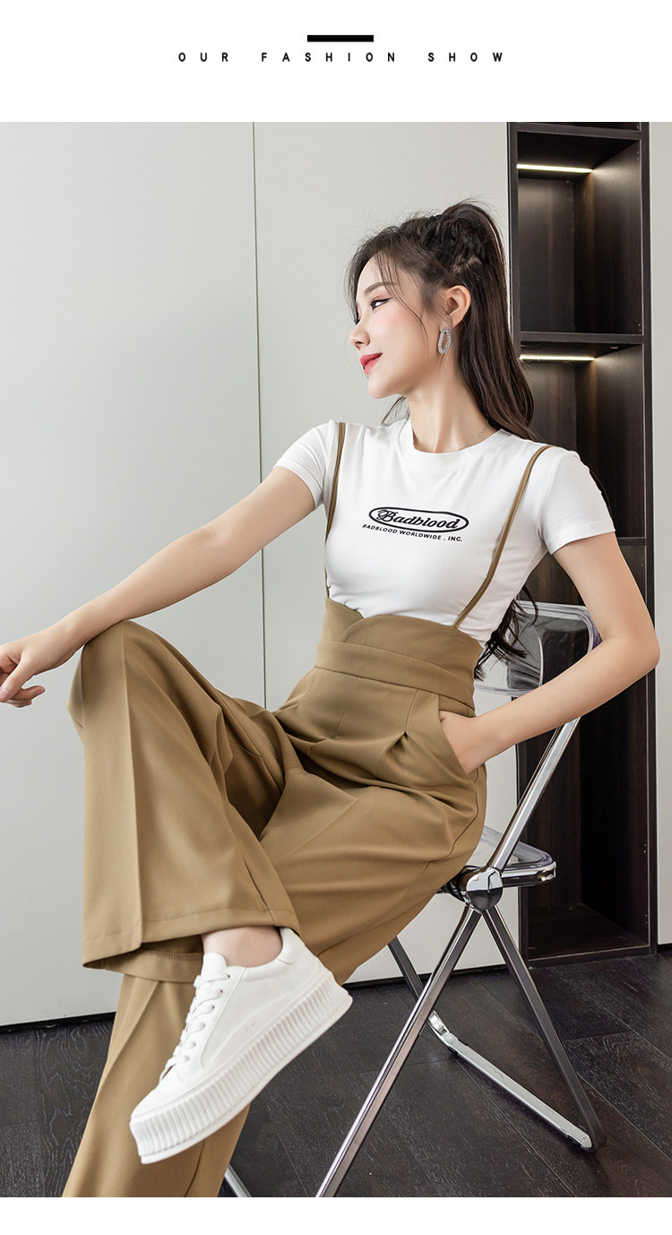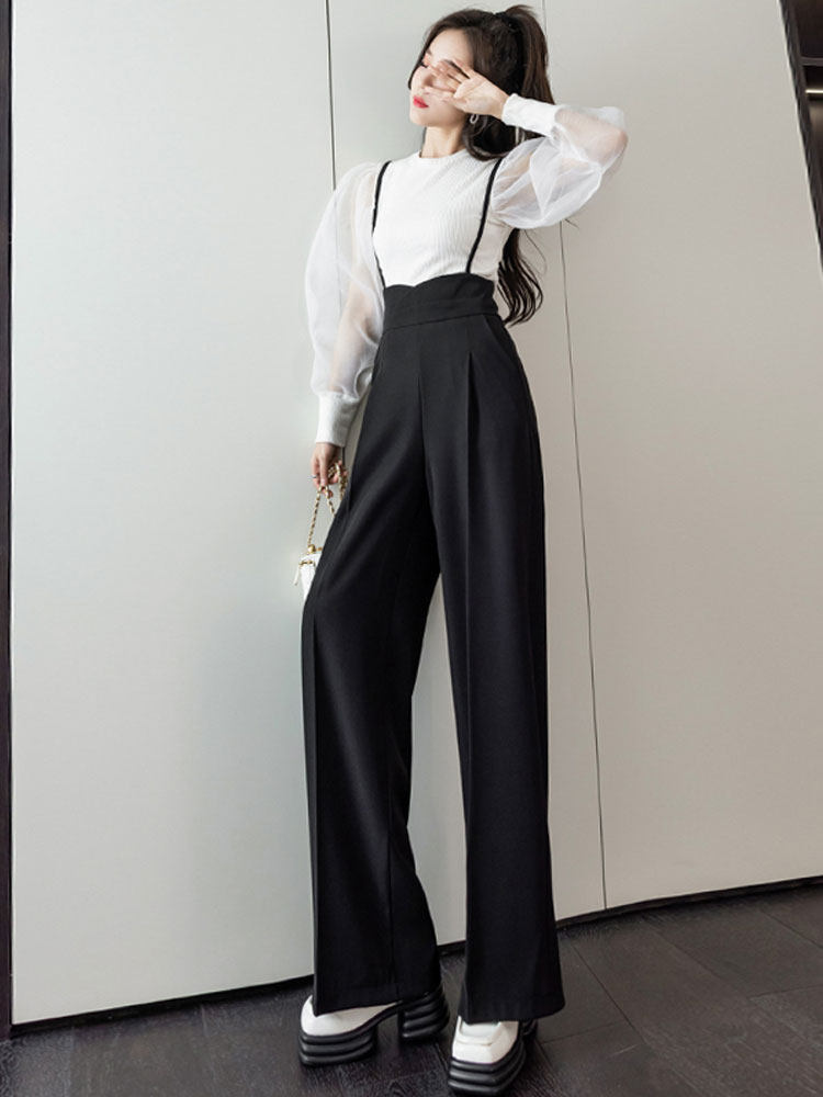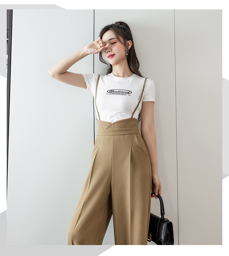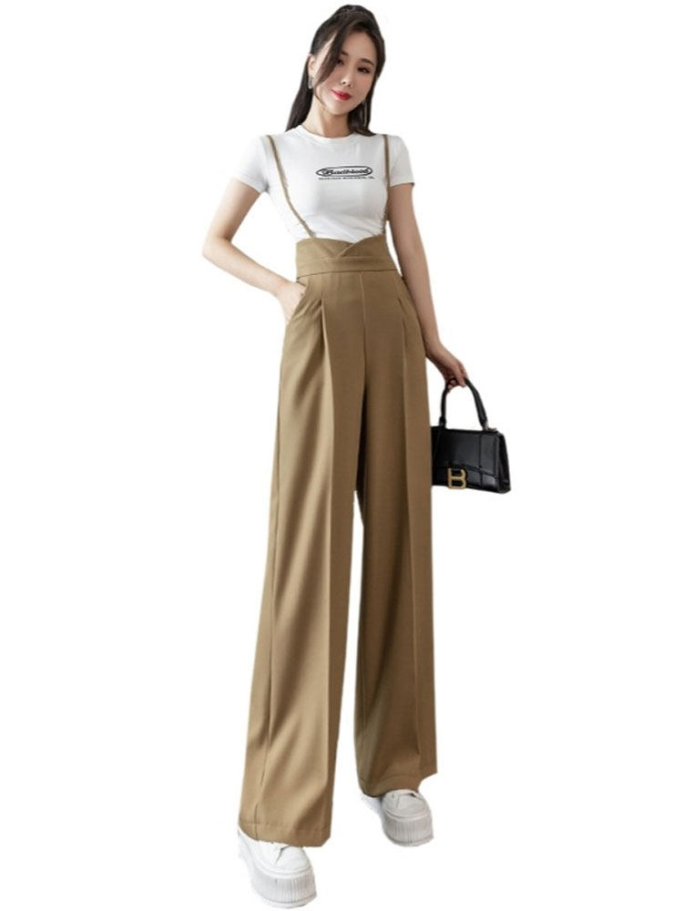 Костюм, штаны, комбинезон, повседневные брюки, высокая талия, свободный прямой крой