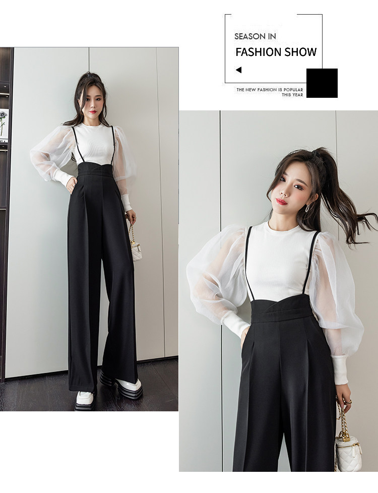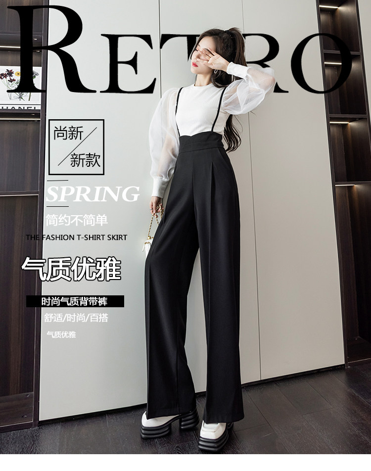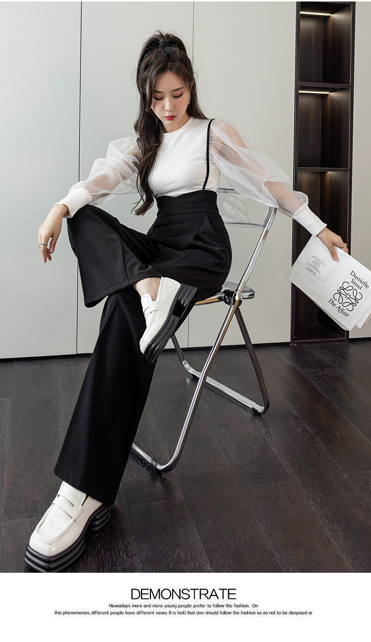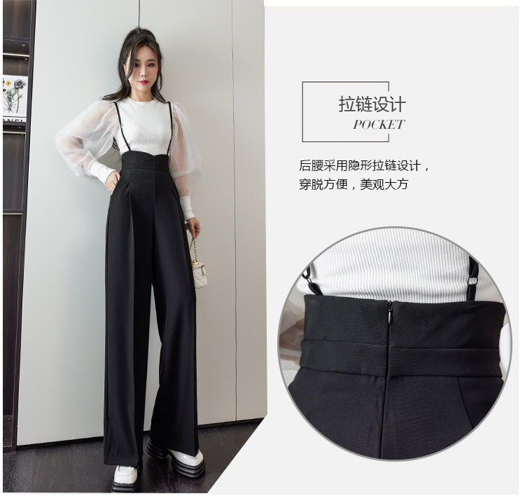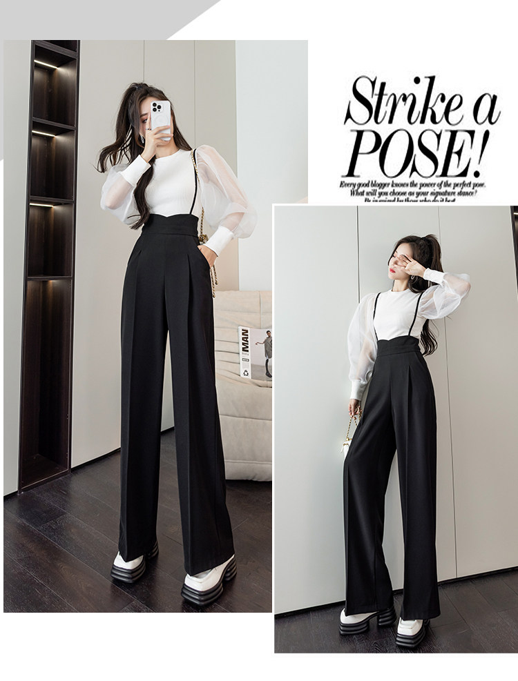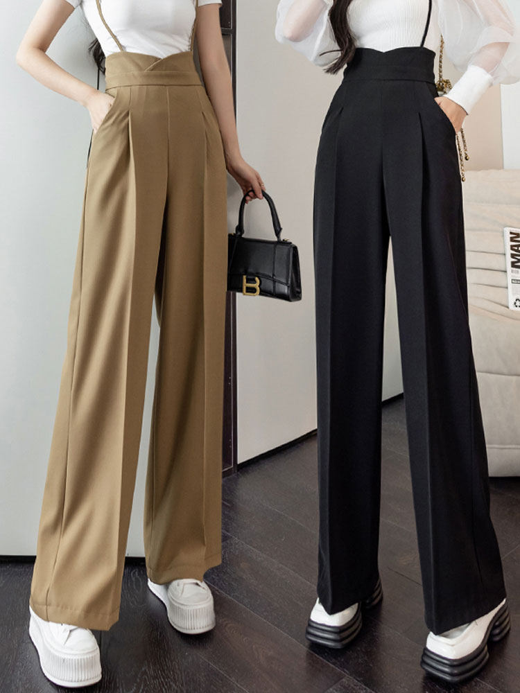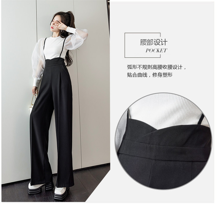 Костюм, штаны, комбинезон, повседневные брюки, высокая талия, свободный прямой крой