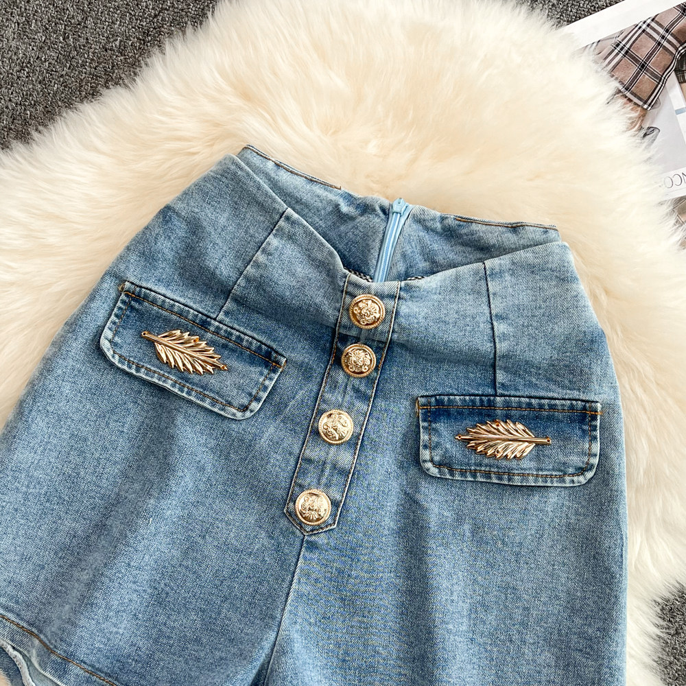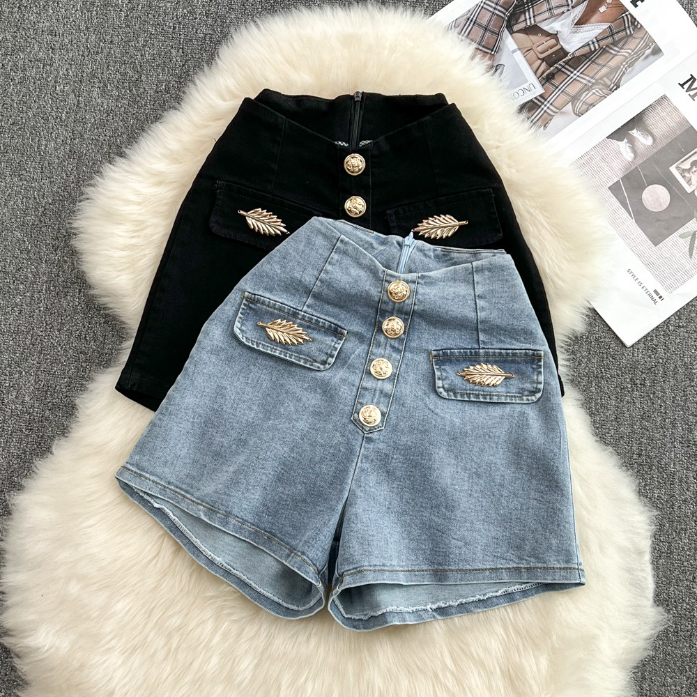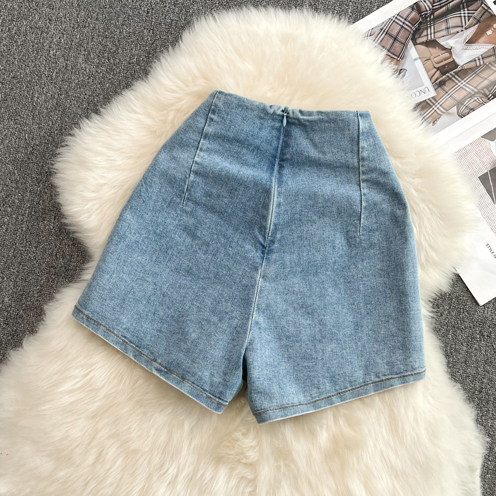 Летняя эластичная джинсовая юбка, шорты, приталенные штаны, в корейском стиле, высокая талия, А-силуэт, свободный крой