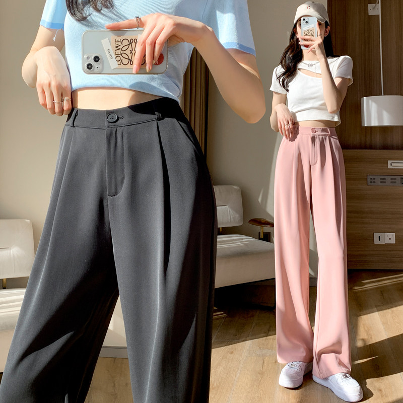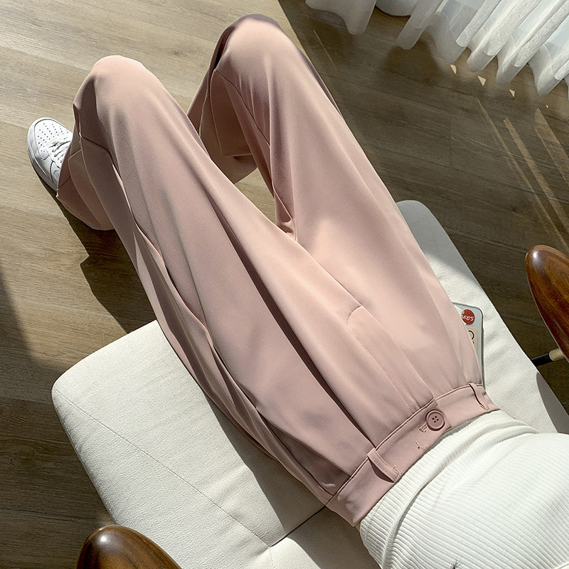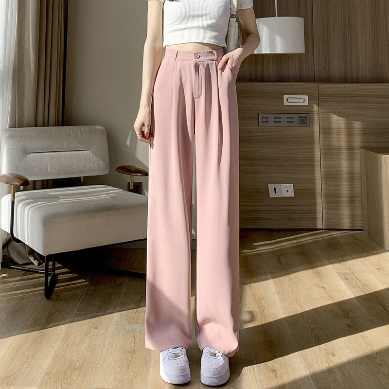 Розовый пиджак классического кроя, осенние тонкие шелковые штаны, высокая талия, свободный прямой крой, подходит для подростков